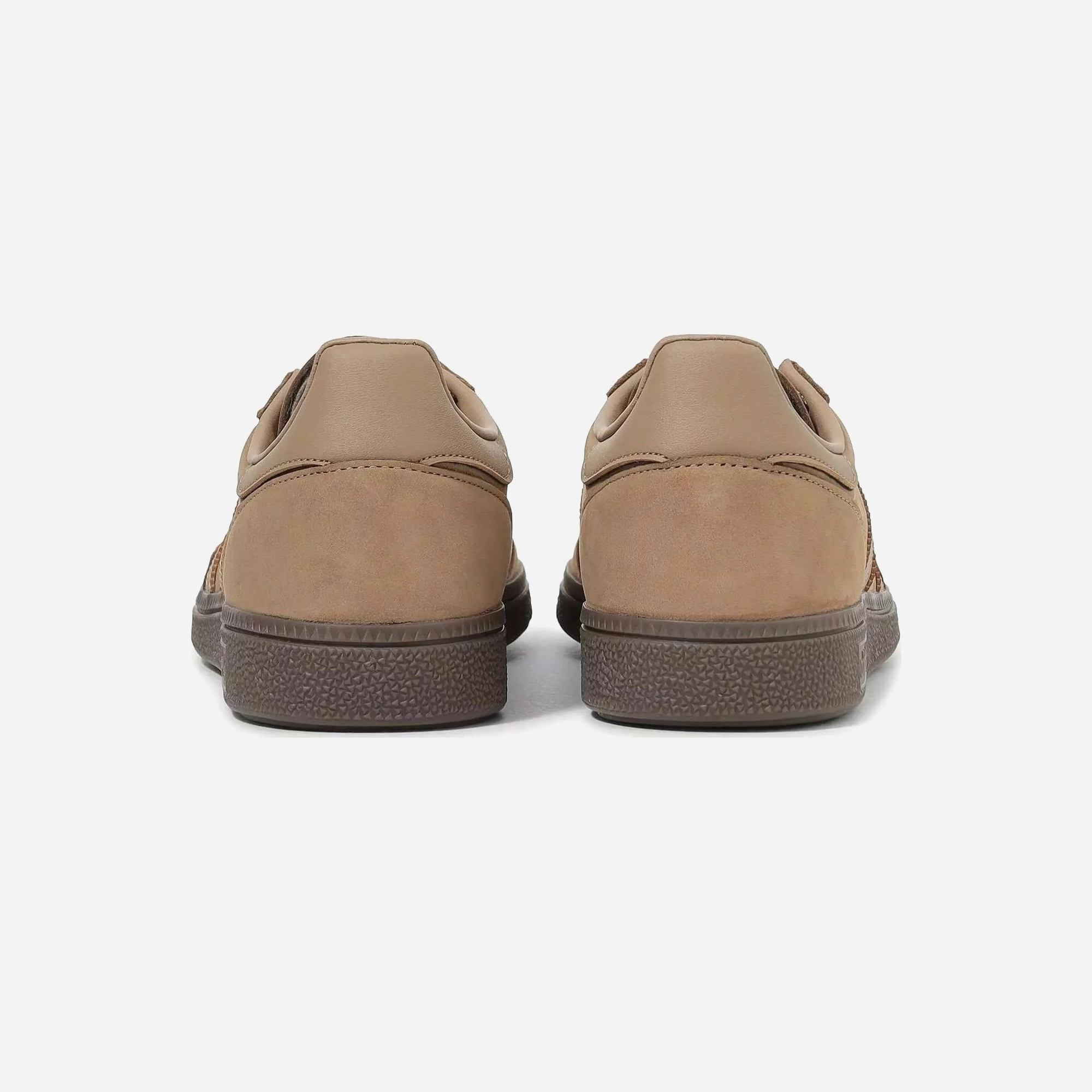 The Adidas Handball Spezial Shoes in Cardboard and Brown Desert reimagine a vintage silhouette with warm, natural tones perfect for effortless everyday wear. First designed in the late '70s for elite handball athletes, this archival classic has been reworked for streetwear lovers who appreciate timeless design and premium detail.