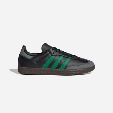 The Adidas Samba OG Black Green WMNS updates the iconic silhouette with fresh, vibrant accents. Featuring a sleek black leather upper, this women's sneaker is highlighted by bright green three stripe branding and a matching heel tab for a bold pop of color. Originally designed for indoor soccer, the Samba OG now delivers lightweight comfort and retro-inspired street style. A durable gum rubber outsole ensures reliable grip while gold Samba lettering adds a touch of heritage. Perfect for sporty or casual looks, the Adidas Samba OG Black Green WMNS blends classic design with a lively modern twist.