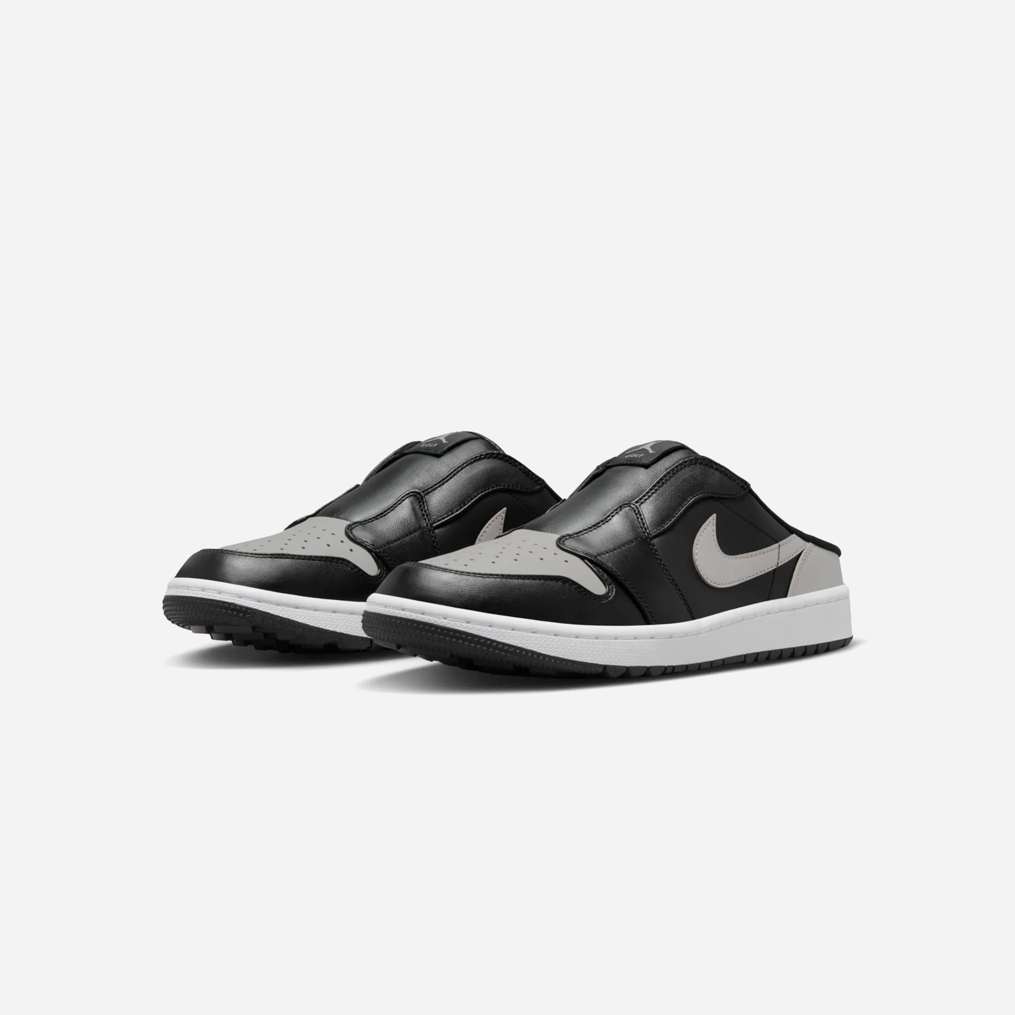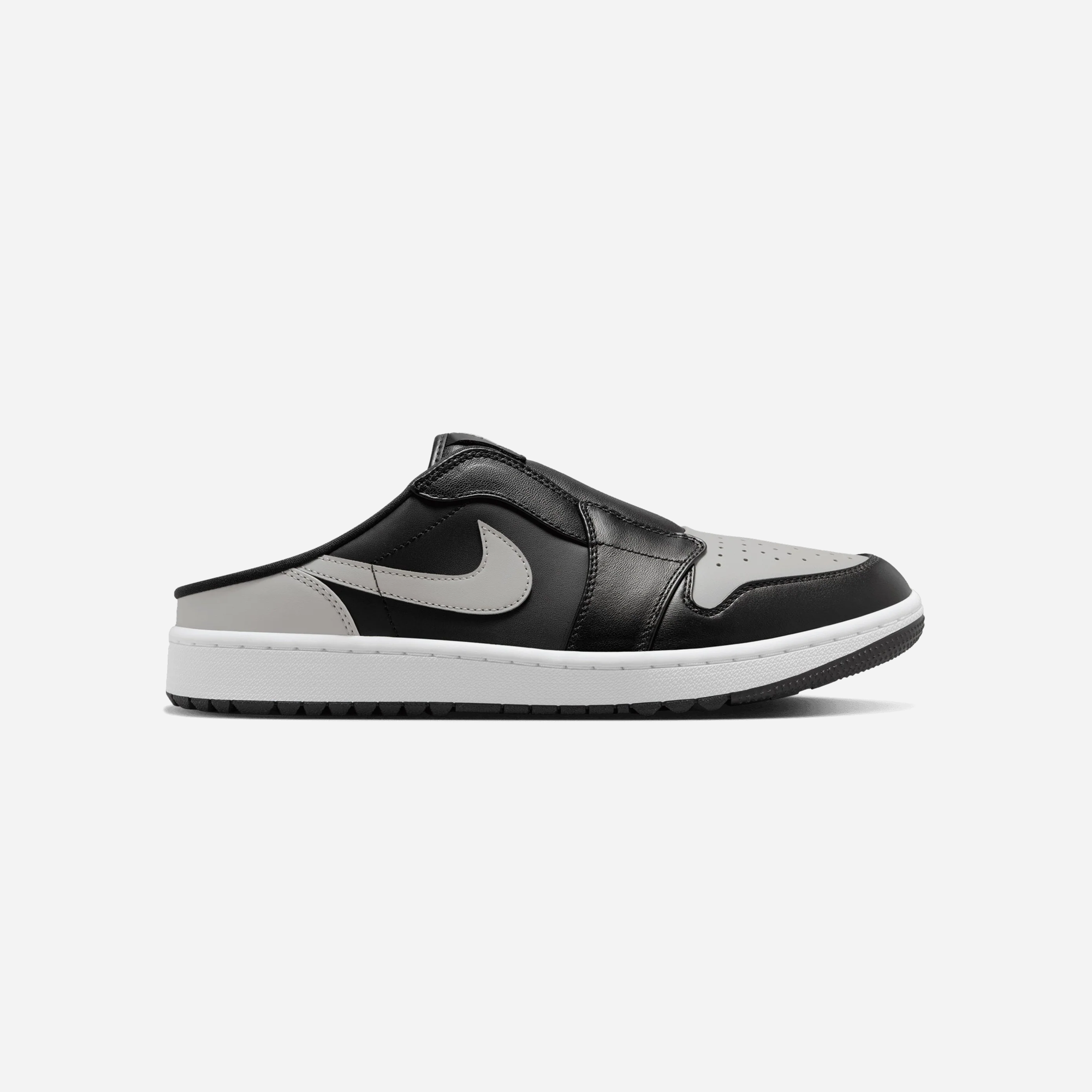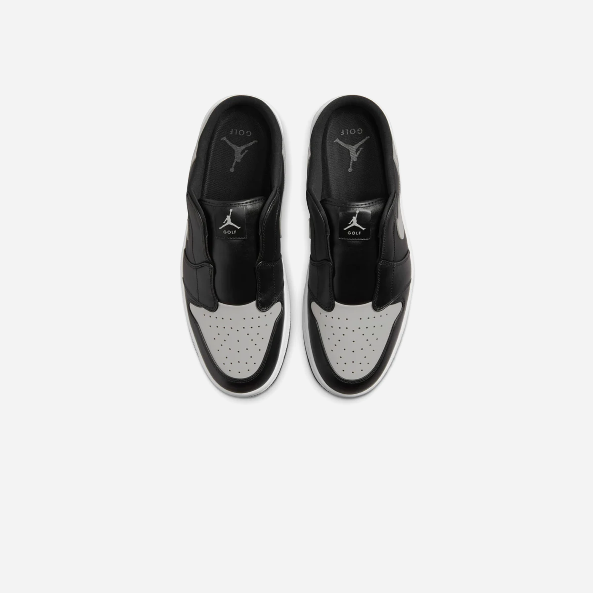 The Air Jordan 1 Mule Golf Shadow brings modern minimalism to the golf course with its slip-on mule design. Featuring grey and black accents, a durable outsole, and a comfortable insole, it is a unique and stylish choice for golfers seeking functionality and flair.