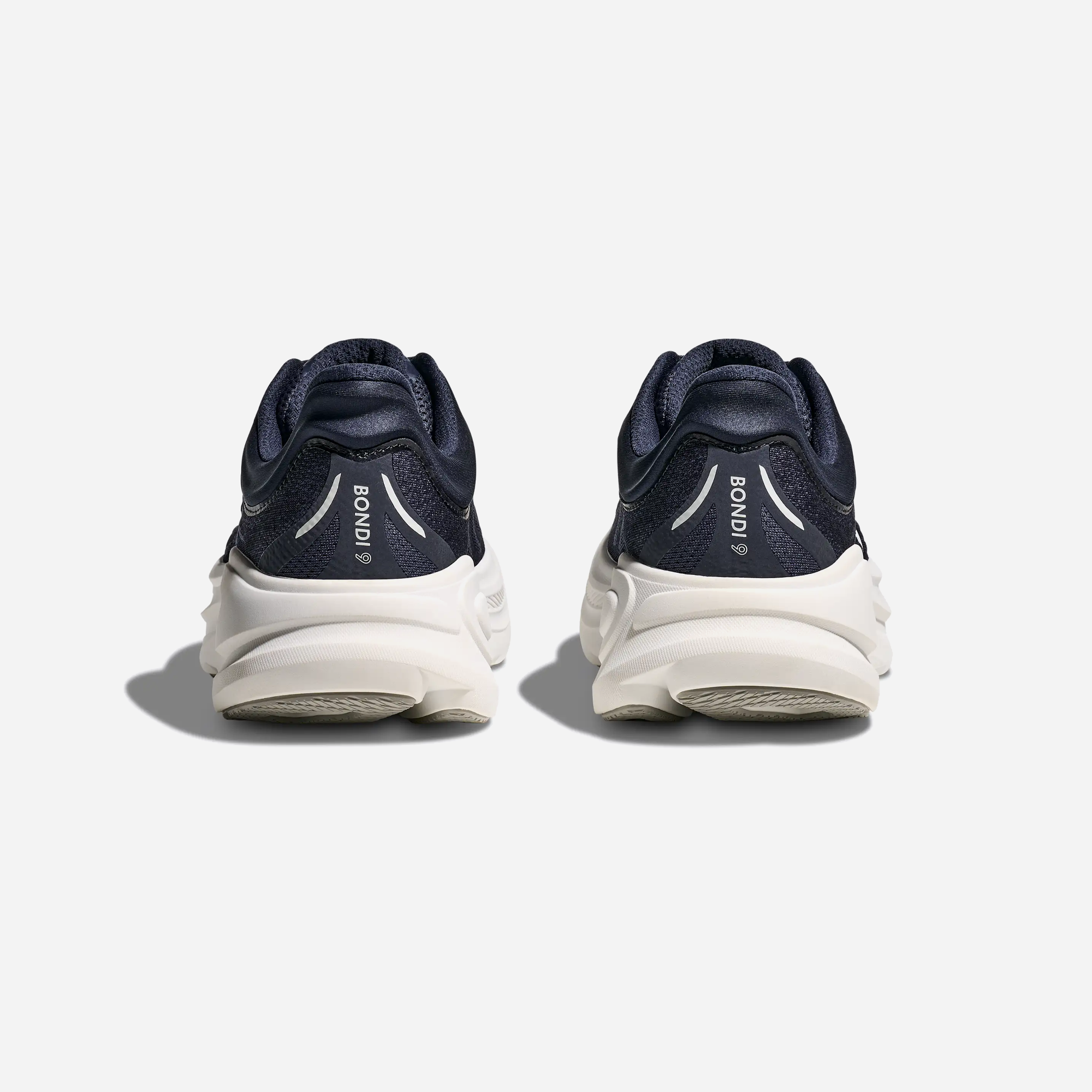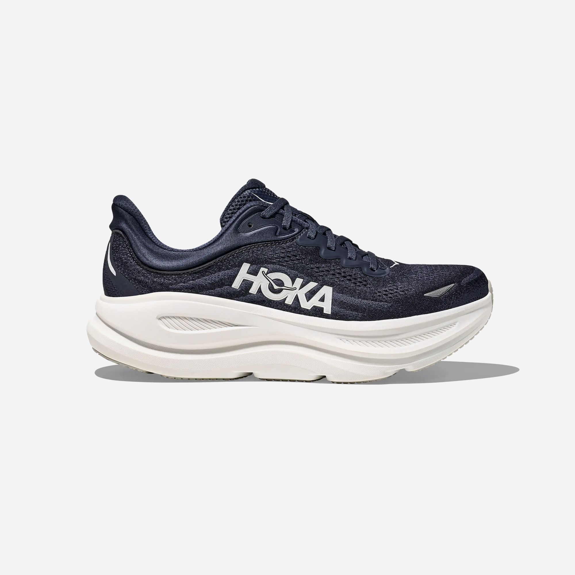 Hoka Bondi 9 Varsity Navy White Regular offers maximum cushioning and smooth transitions for everyday comfort. Designed with a softer, lighter foam and extended heel geometry, it delivers a balanced and stable ride. The engineered mesh upper provides breathable support while the durable rubber outsole ensures long-lasting traction. Ideal for runners and walkers seeking plush impact protection, the Bondi 9 is one of the most cushioned shoes in the Hoka lineup