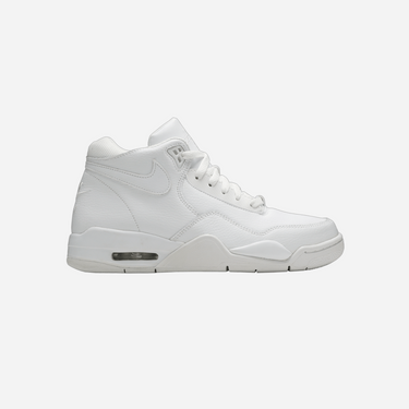 Clean and timeless, the Nike Flight Legacy Triple White is an all-white sneaker that exudes versatility. Featuring a smooth leather upper, Air-cushioned midsole, and a padded collar, this sneaker ensures all-day comfort. The high-top silhouette provides ankle support, while the textured rubber outsole ensures grip on any surface. Whether styled for casual wear or on the court, this sleek sneaker is a must-have for any rotation.