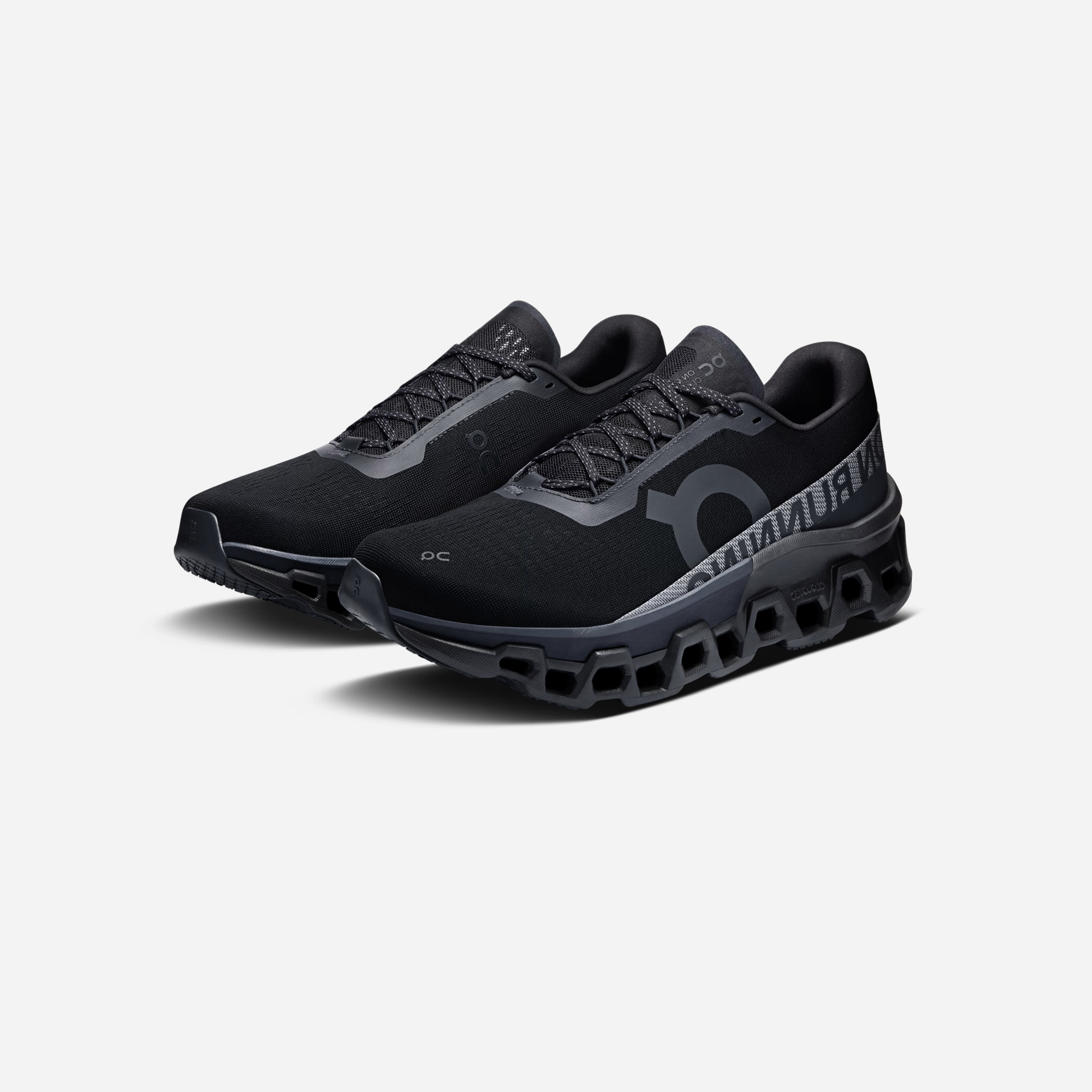 On Running Cloudmonster 2 Black Black delivers maximum cushioning and bold design Featuring Helion superfoam and CloudTec this performance sneaker offers powerful energy return and all day comfort for long runs and urban adventures