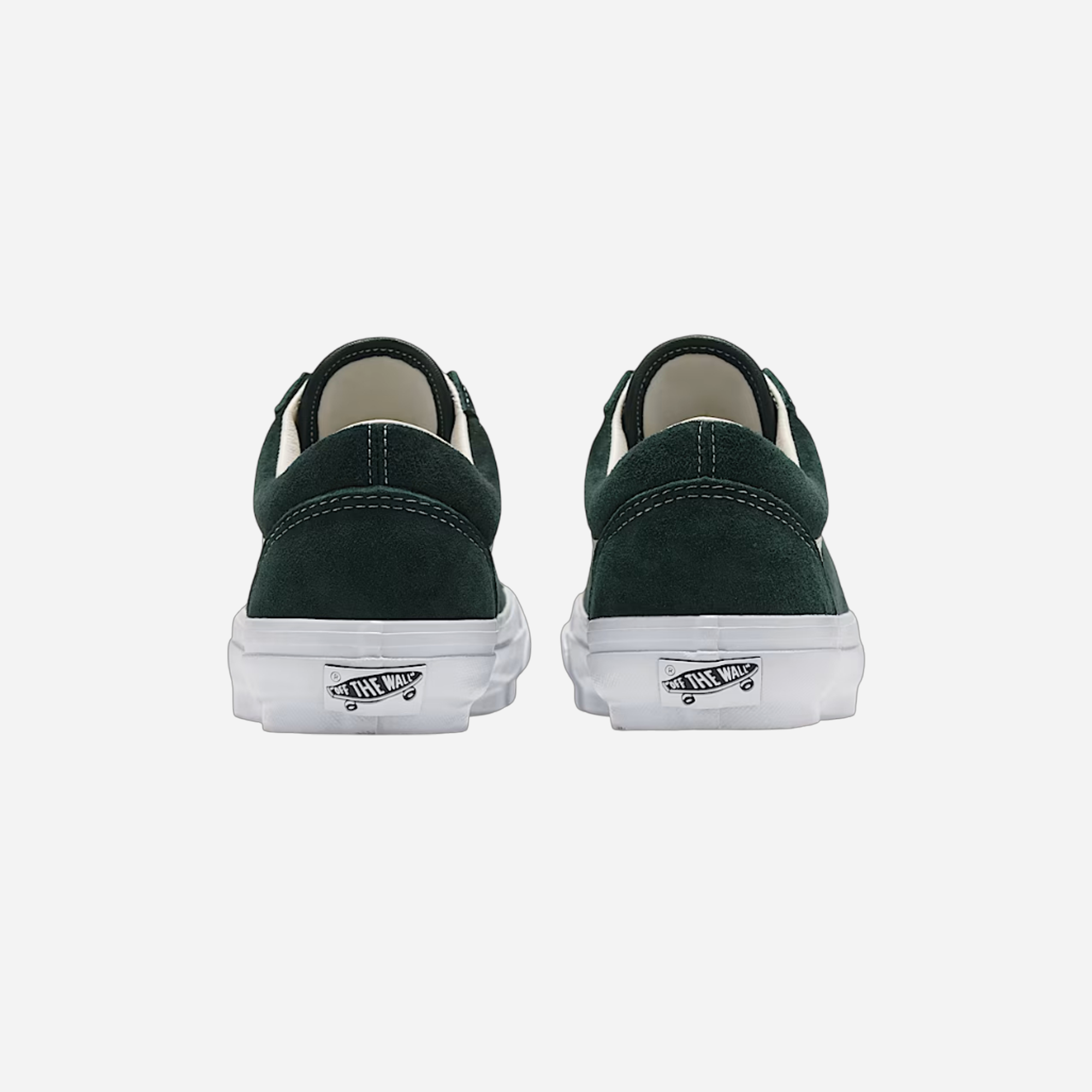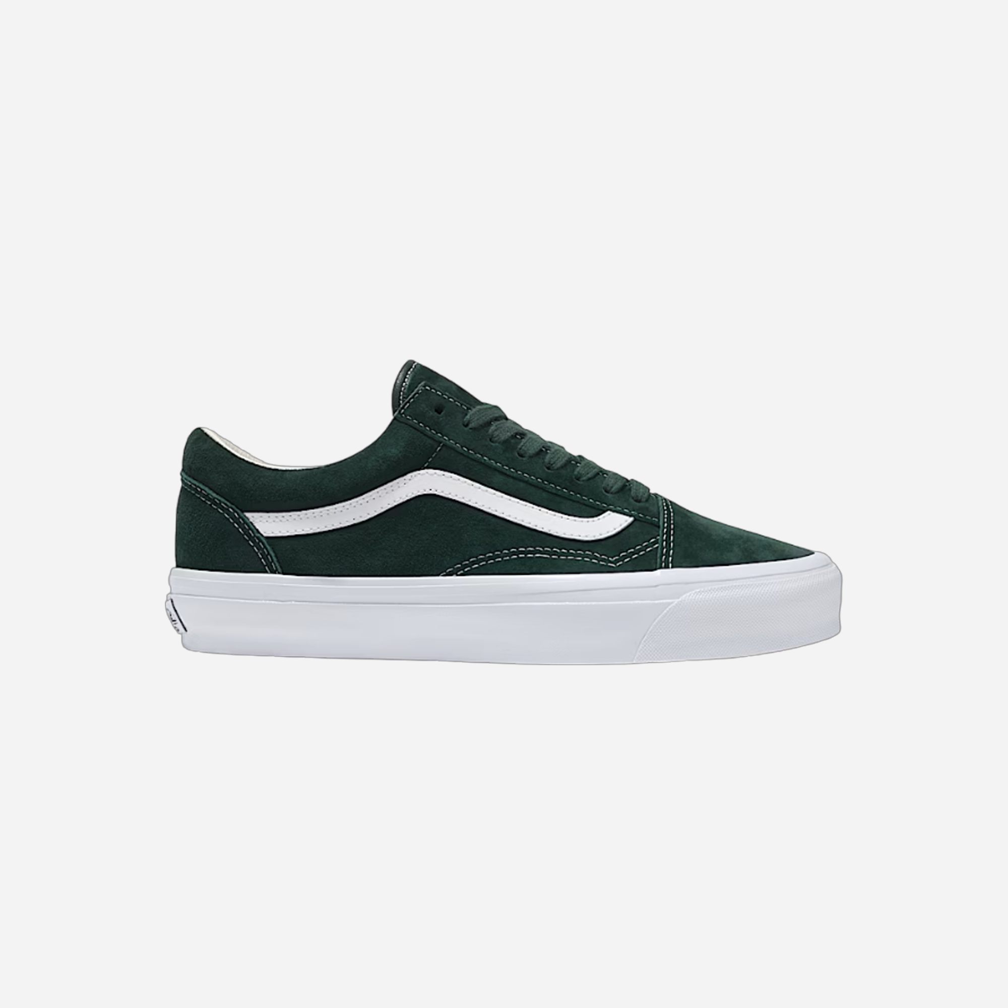 The Vans Premium Old Skool Scarab Green shoes blend classic skate style with a rich green colorway. These sneakers feature a durable suede and canvas upper providing comfort and support for everyday wear. The iconic low-top design and signature waffle outsole deliver excellent grip and timeless appeal for casual and skate enthusiasts.