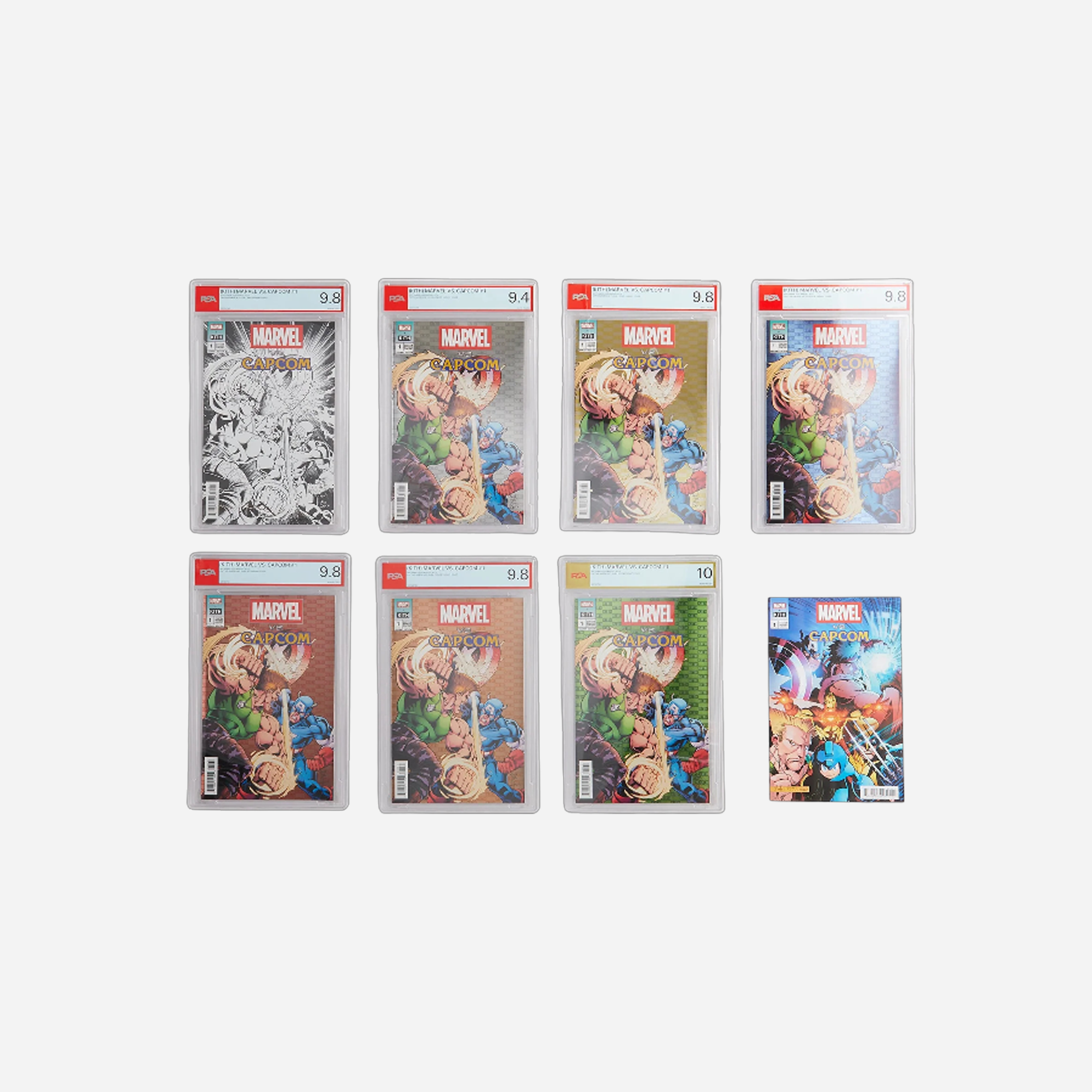 Custom double-box packaging celebrating Marvel’s Captain America and Capcom Guile. Gift-with-purchase comic book included while supplies last. Cover art and gradation may vary.