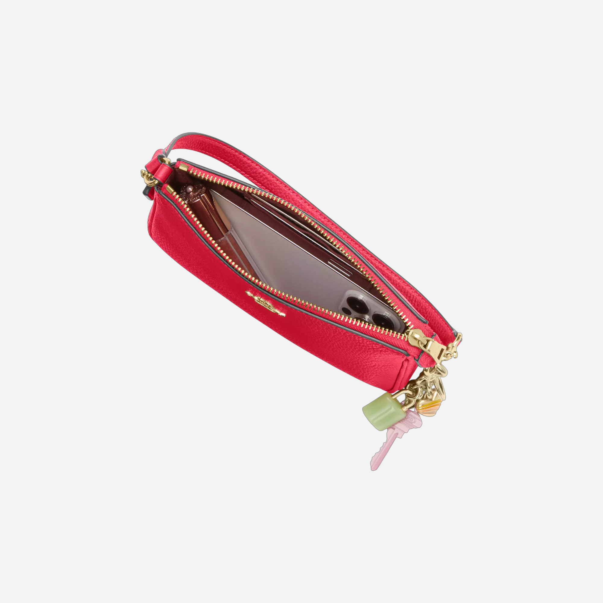 Discover the COACH Nolita 19 in luxurious pebbled leather with elegant gold hardware. This carnation colored crossbody bag combines timeless design with practical functionality. Perfect for daily use, it offers sophisticated style and durability. An iconic Coach piece that elevates any wardrobe effortlessly.