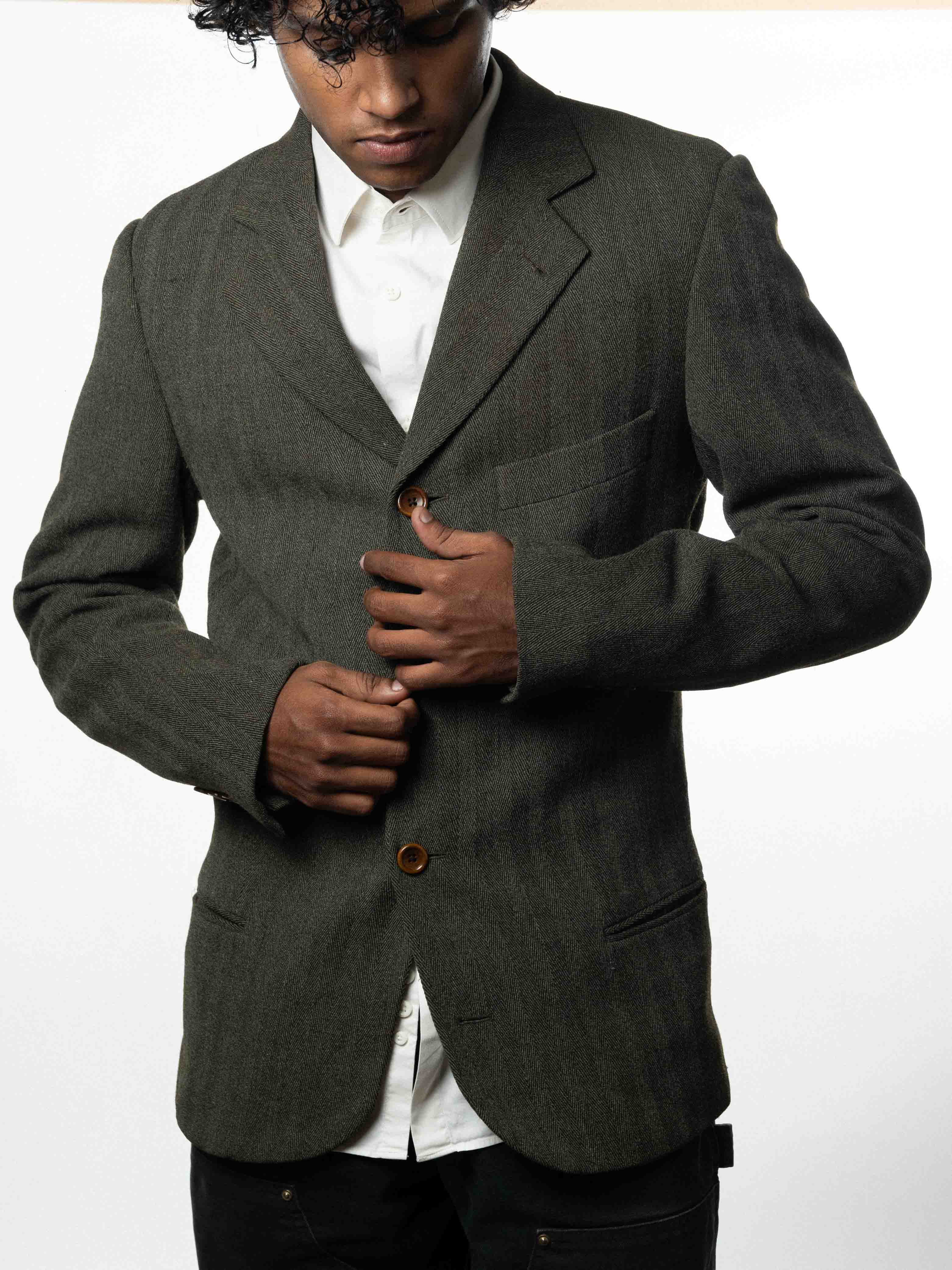 This Hugo Boss Vintage Brown Herringbone Wool piece features classic craftsmanship and a sophisticated design in very good condition. Premium craftsmanship