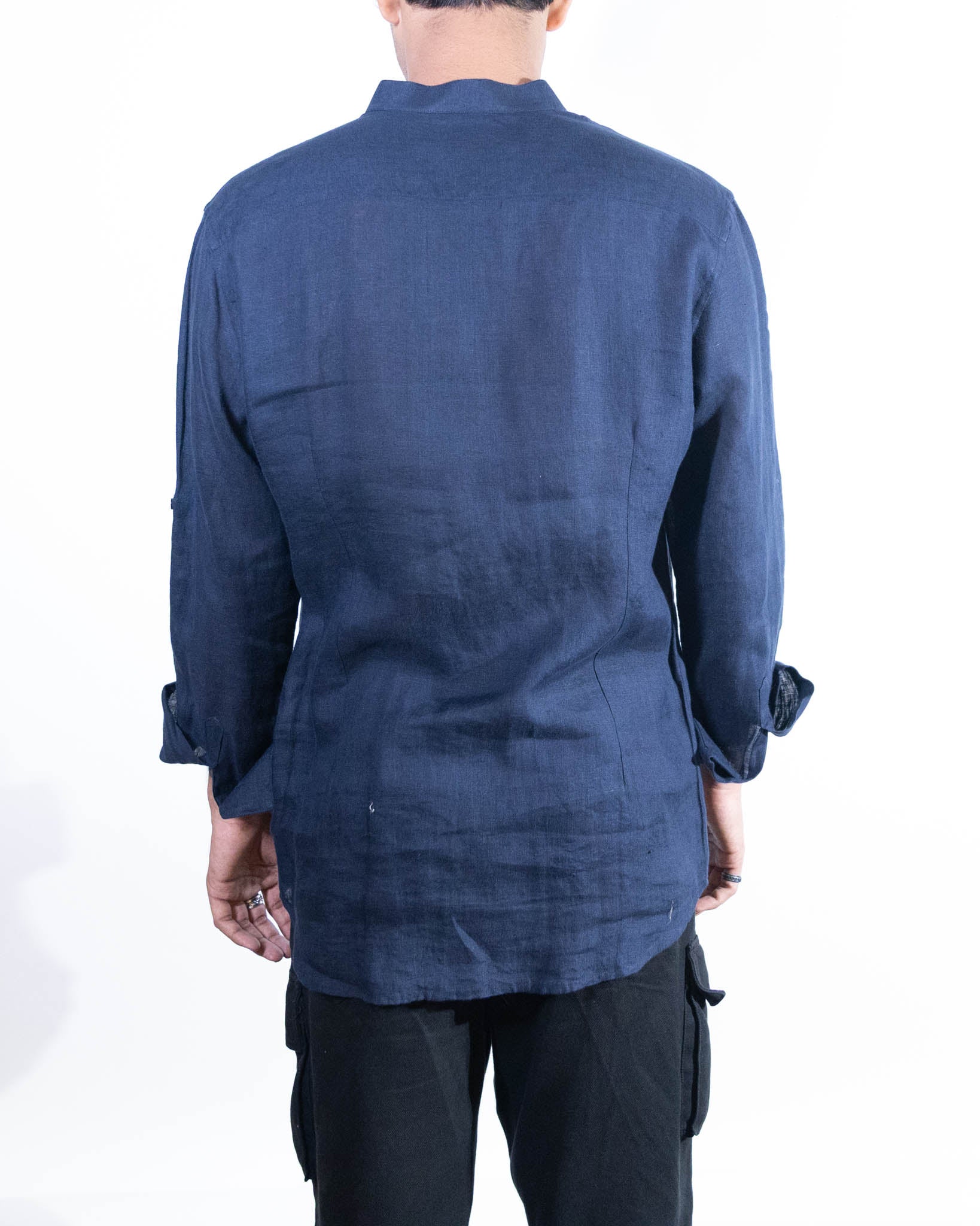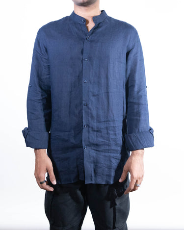 Kora By Nitesh Mitesh Linen Lino Shirt - Navy (S)