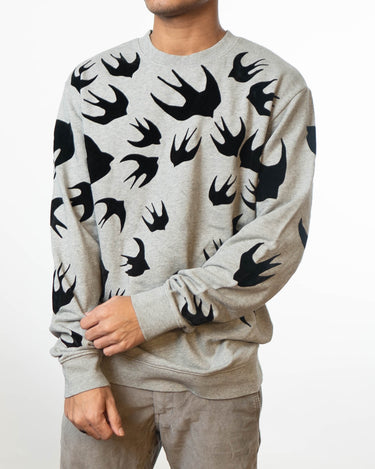 Experience contemporary luxury with this McQueen sweatshirt in XL, showcasing distinctive swallow appliques that elevate casual wear into a statement piece of refined style. Grey
