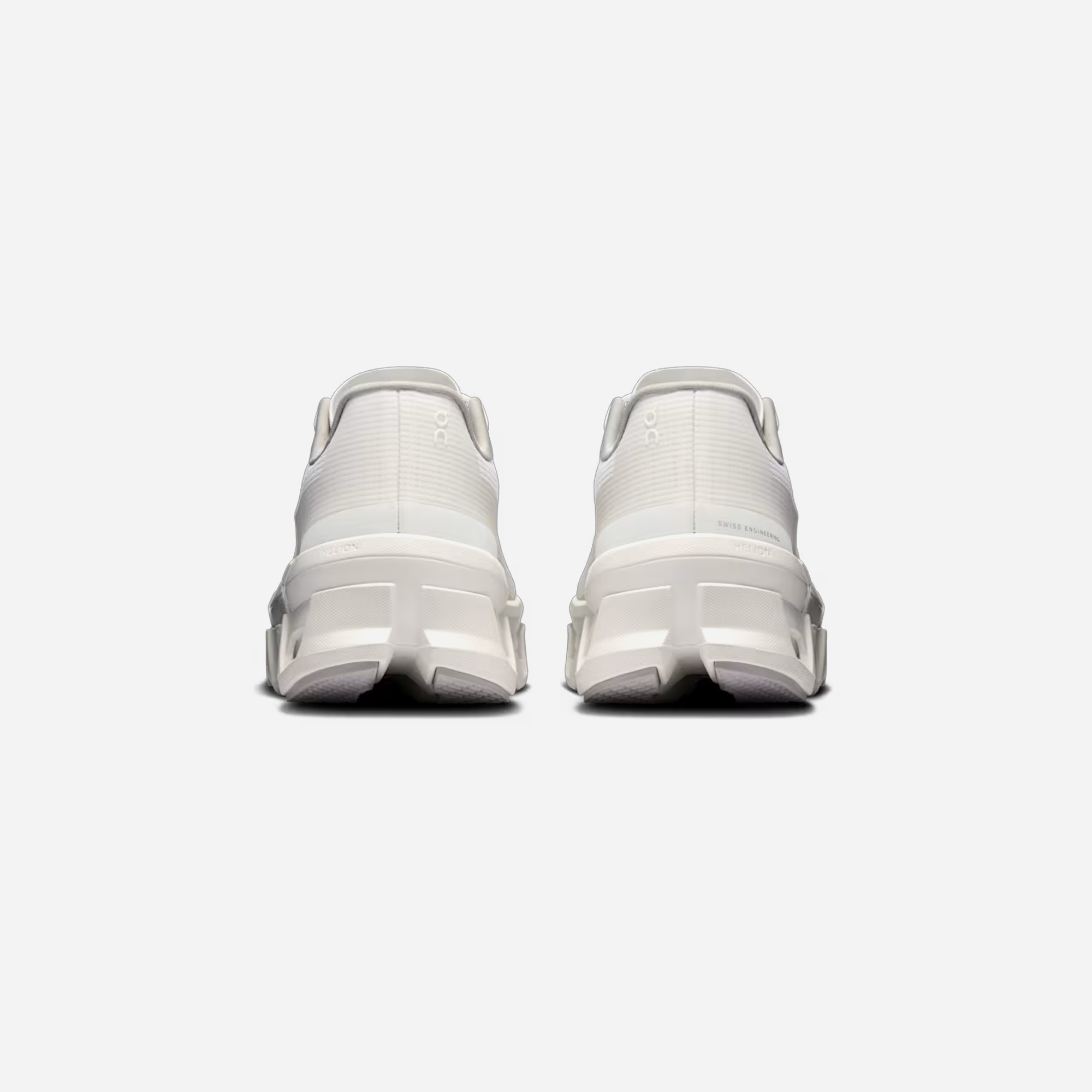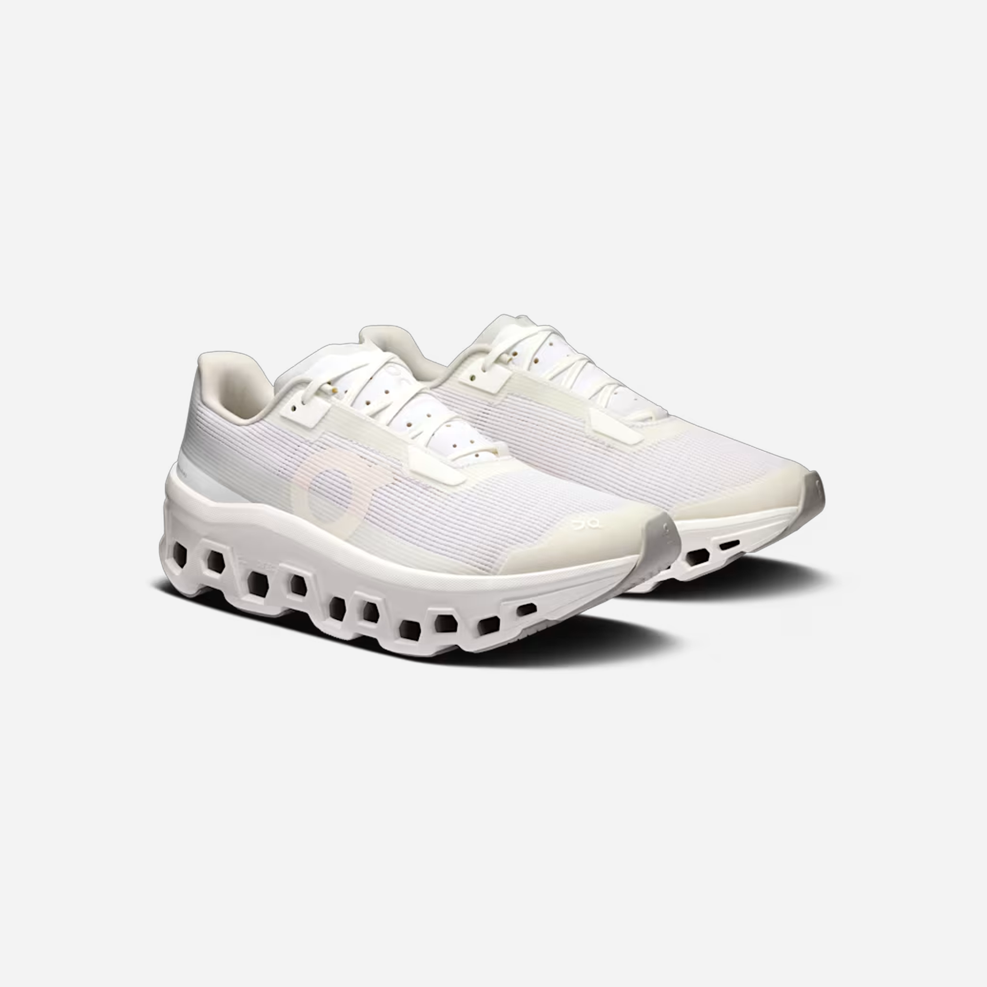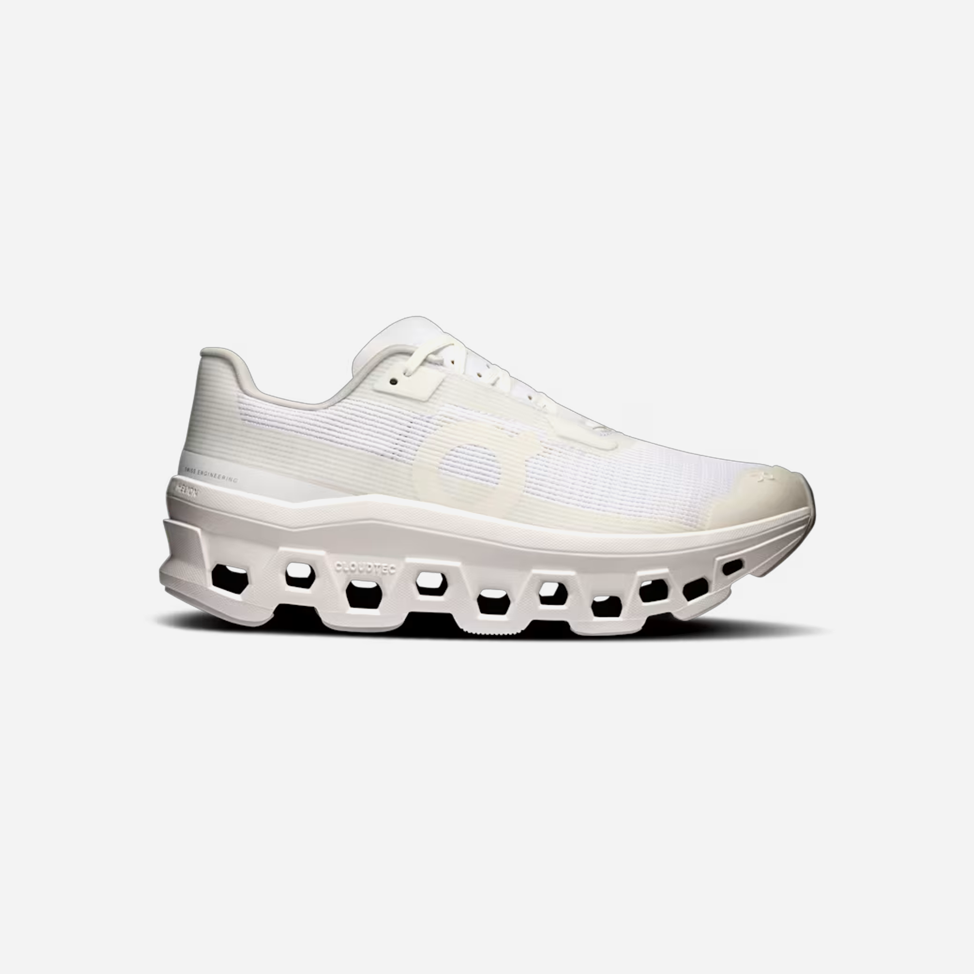 ON Running Cloudmonster Void White White women's shoes combine innovative CloudTec technology with elegant design for female runners. These lightweight trainers deliver responsive cushioning and superior comfort during intense training sessions. Built for performance and style, they offer excellent stability and energy return for serious athletes.
