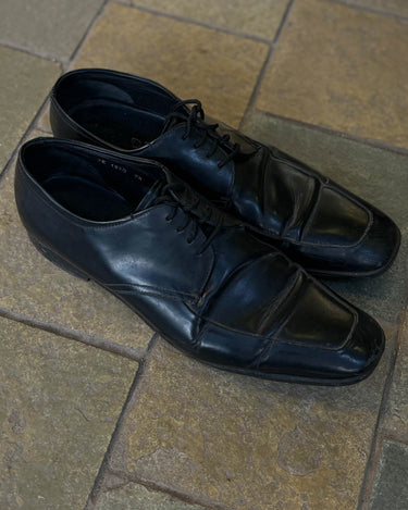 Step into refined elegance with these Prada lace-up shoes in UK size 10, showcasing Italian craftsmanship and timeless sophistication for the discerning wearer. Timeless
