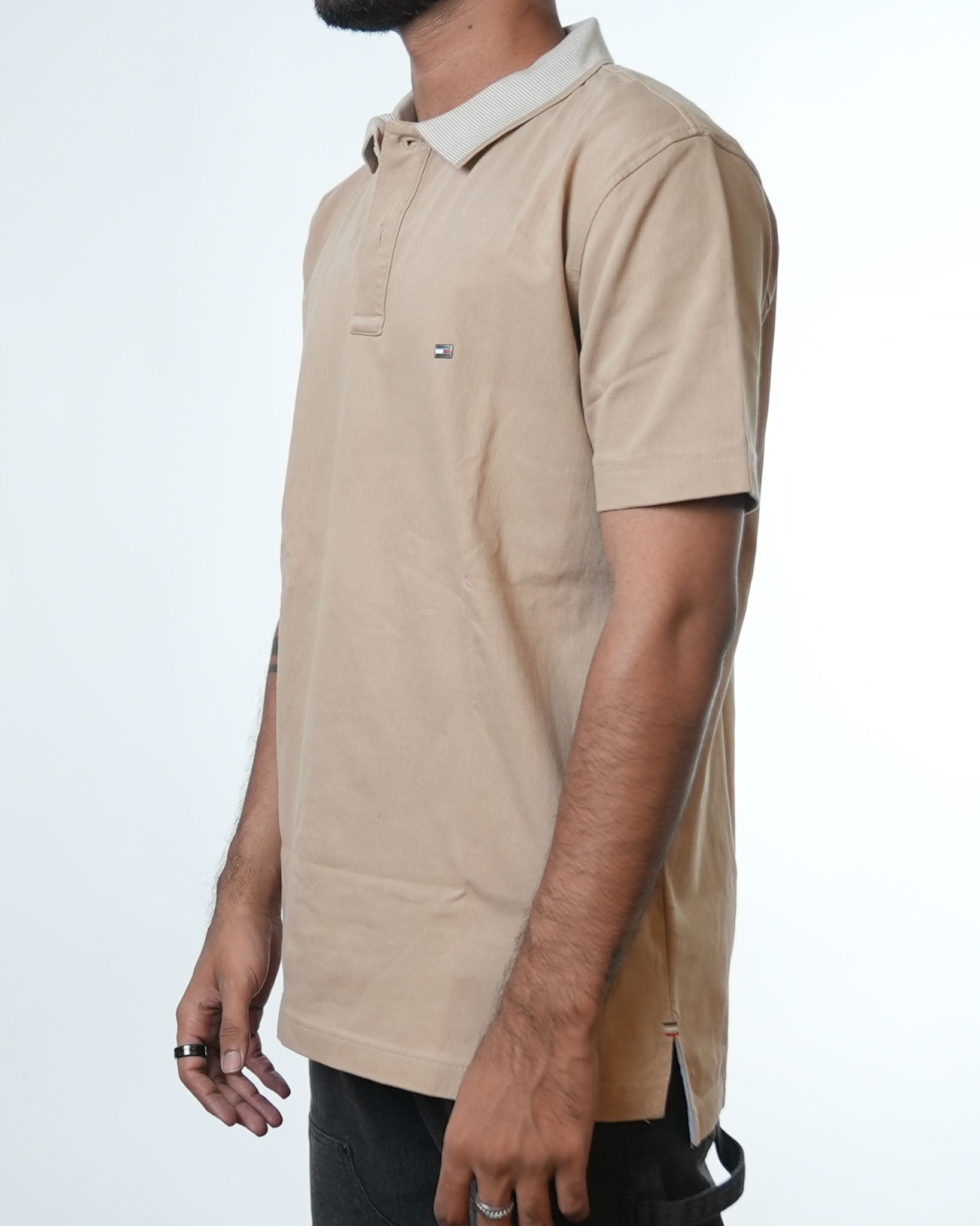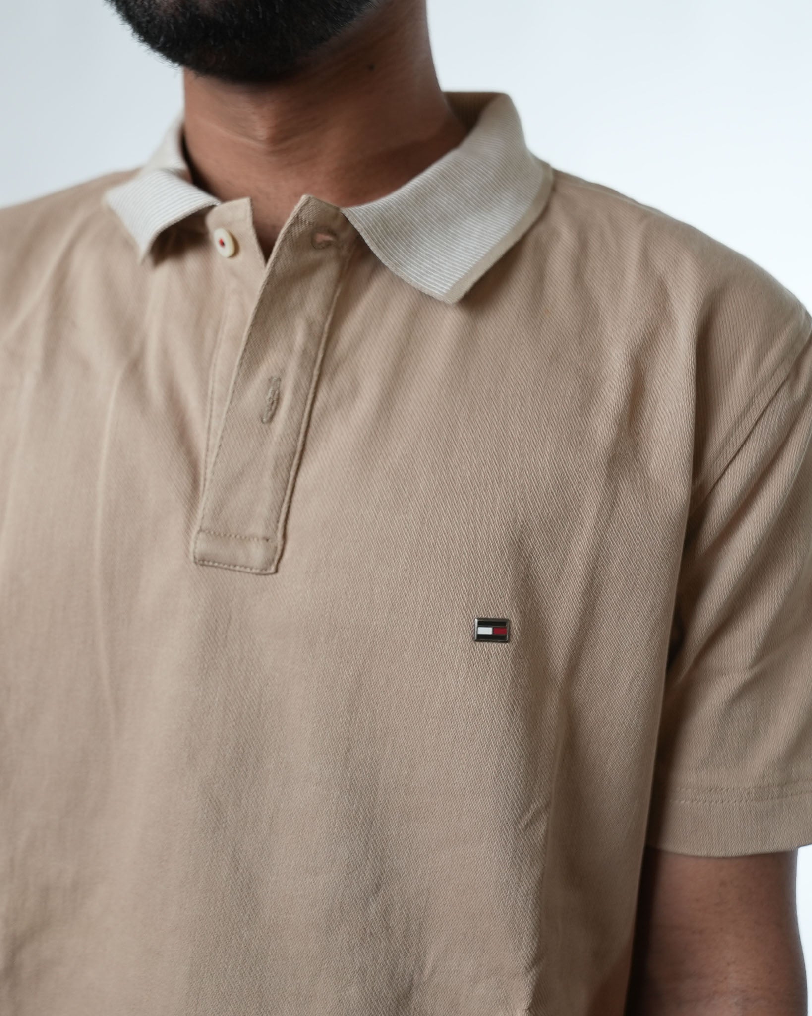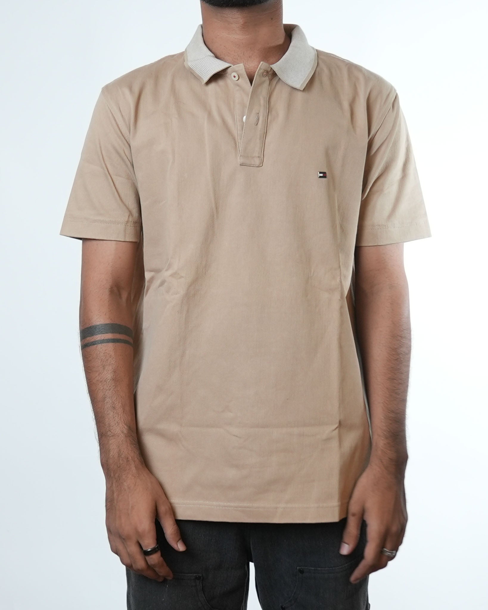 Classic Tommy Hilfiger beige polo t-shirt offers versatile style, premium comfort, and refined detailing for everyday wear. Classic style
