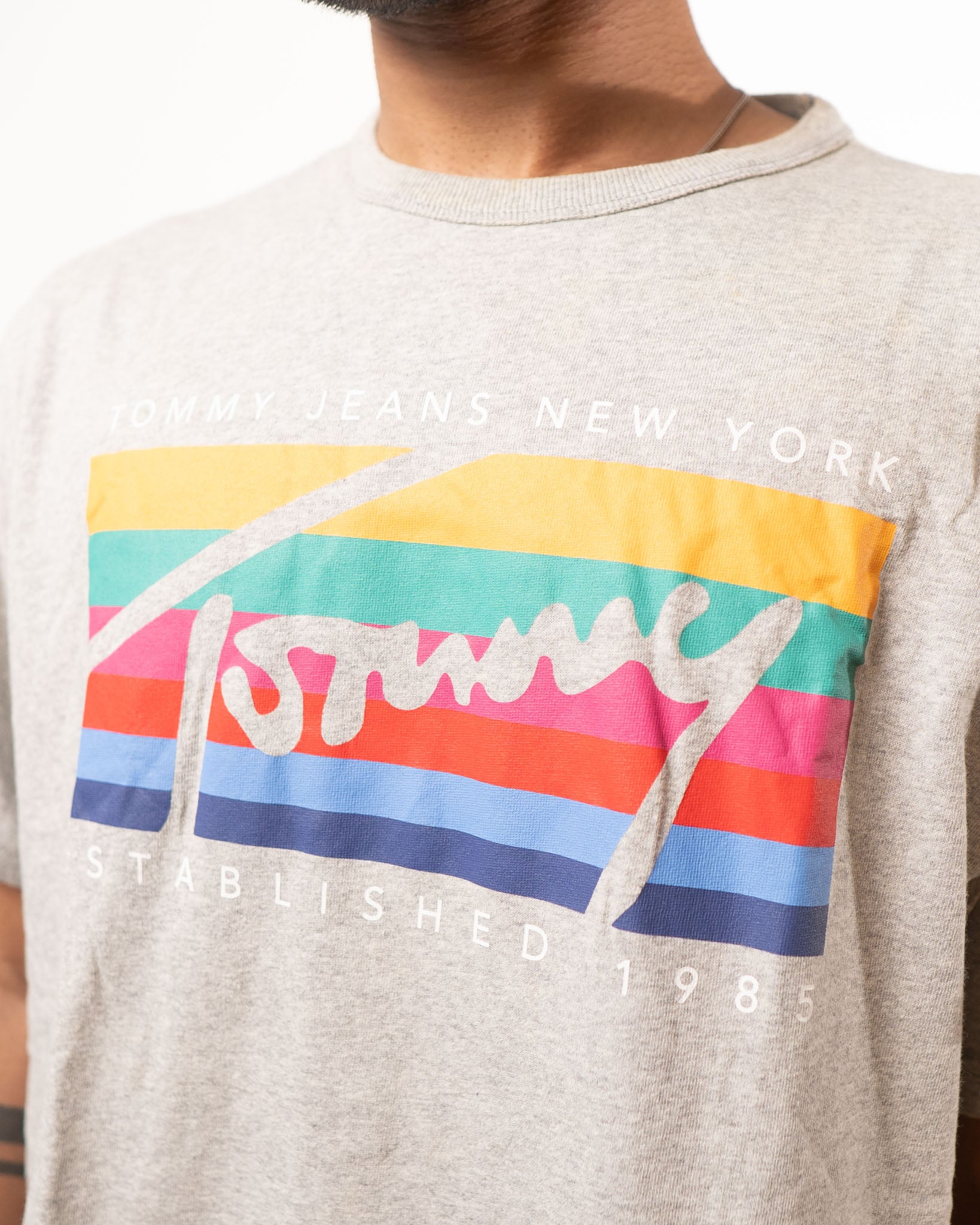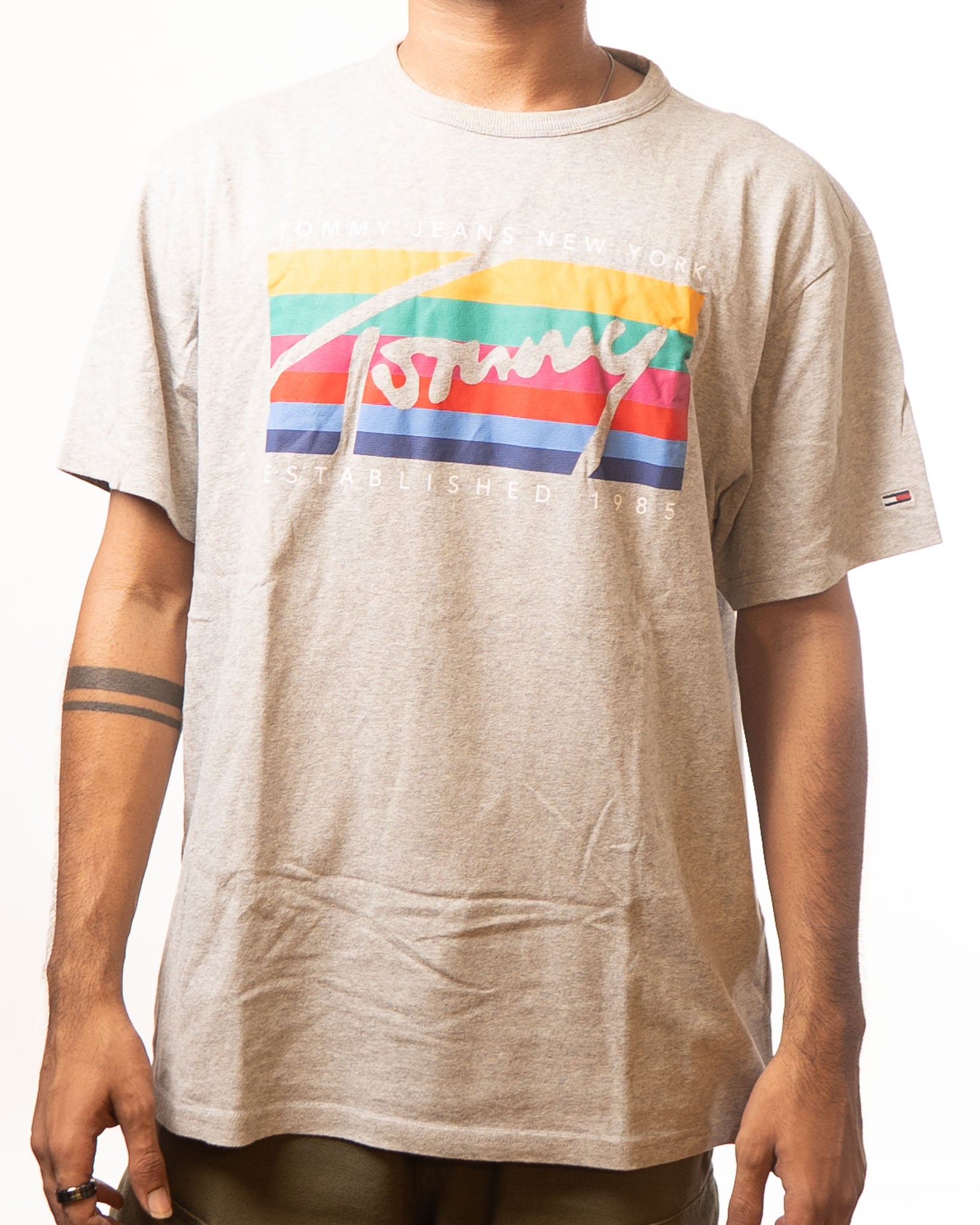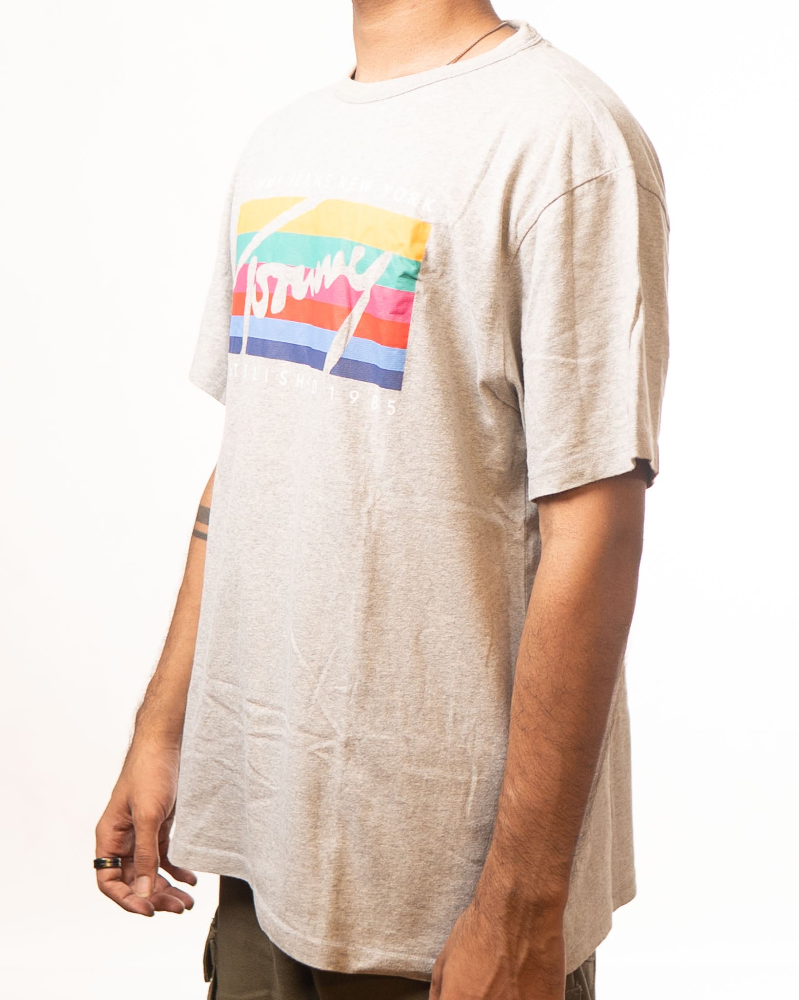 Effortless Tommy Hilfiger Grey Printed T-shirt. Soft cotton, signature branding, and comfortable for everyday style. Effortless style