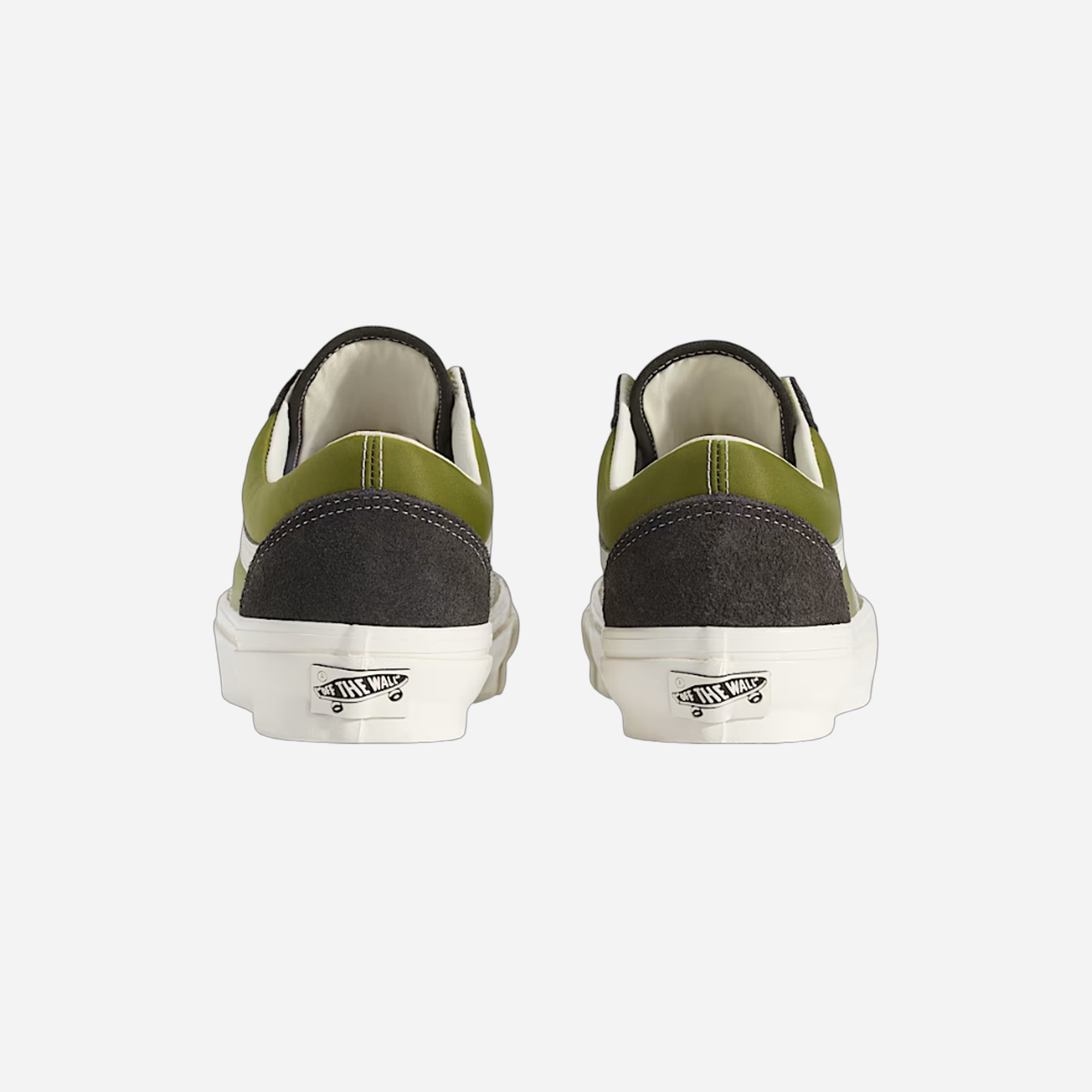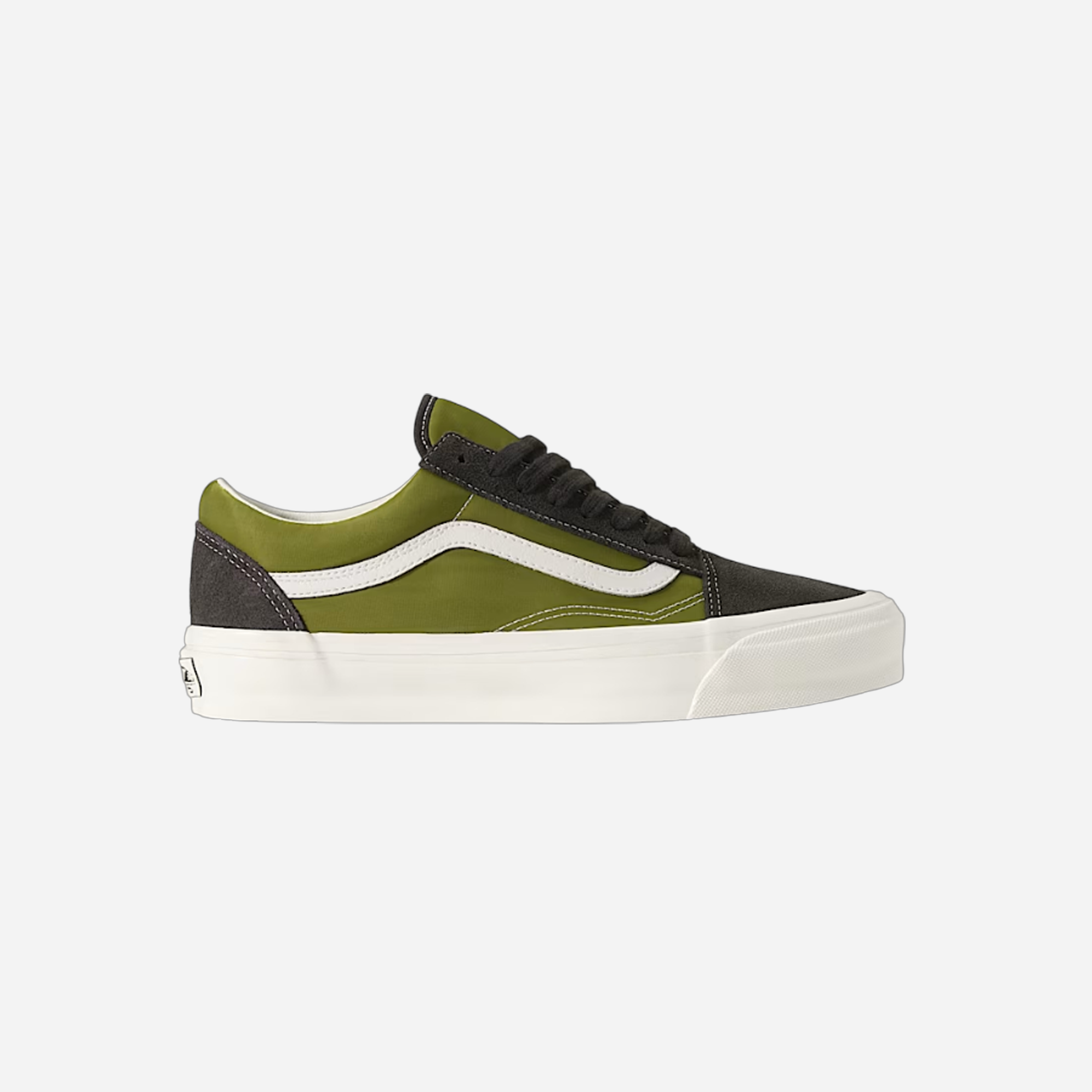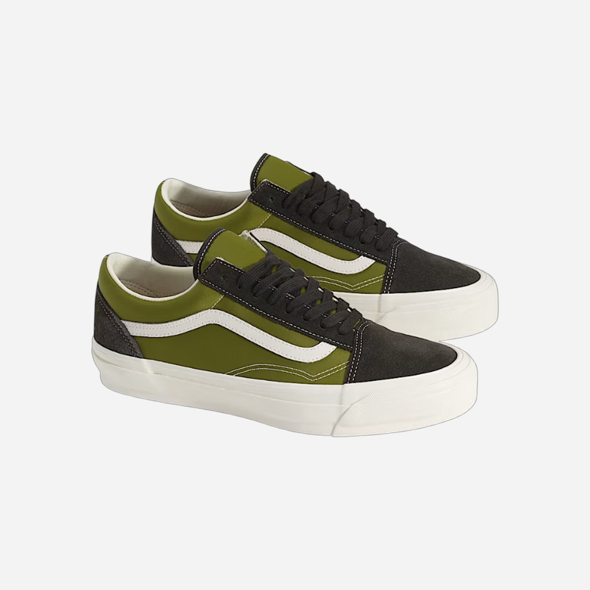 The Vans Premium Old Skool Aged Green delivers an iconic low-top skate shoe look with elevated materials. This sneaker features a rich aged green colorway on durable canvas and suede. Experience classic style ultimate comfort and superior grip with the signature rubber waffle outsole perfect for everyday wear and authentic skate heritage.