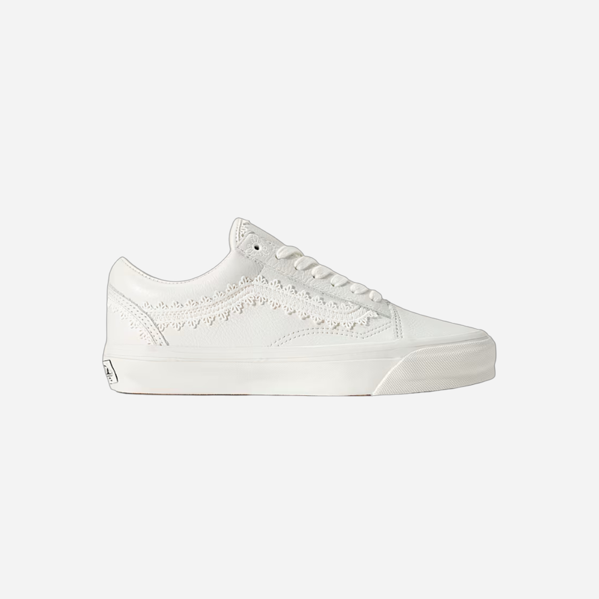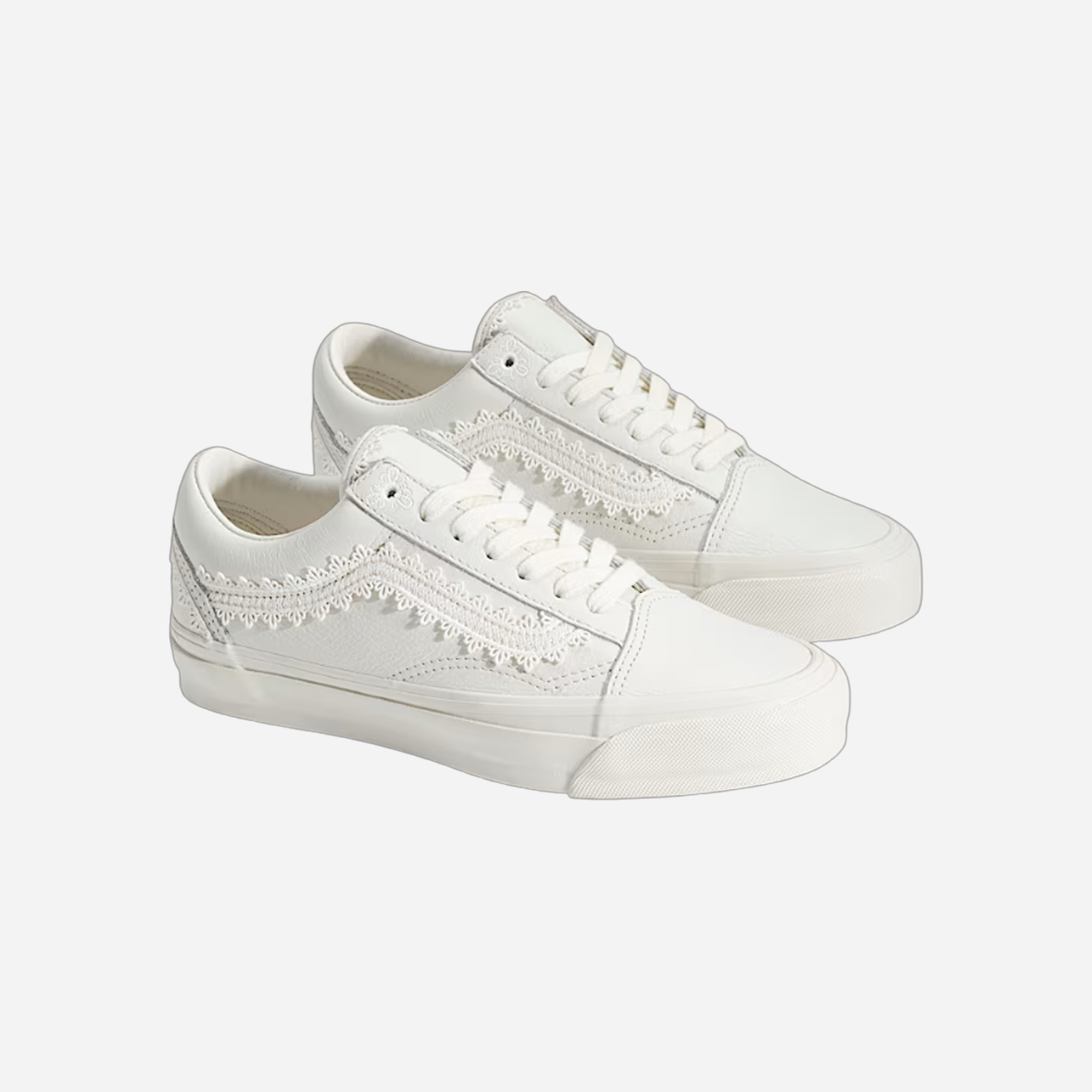 The Vans Premium Old Skool Marshmallow White sneakers are perfect for a clean classic look. This iconic low top skate shoe features durable white canvas and suede construction offering exceptional comfort and grip. Enjoy the timeless style and signature rubber waffle outsole perfect for everyday wear and authentic skate heritage.