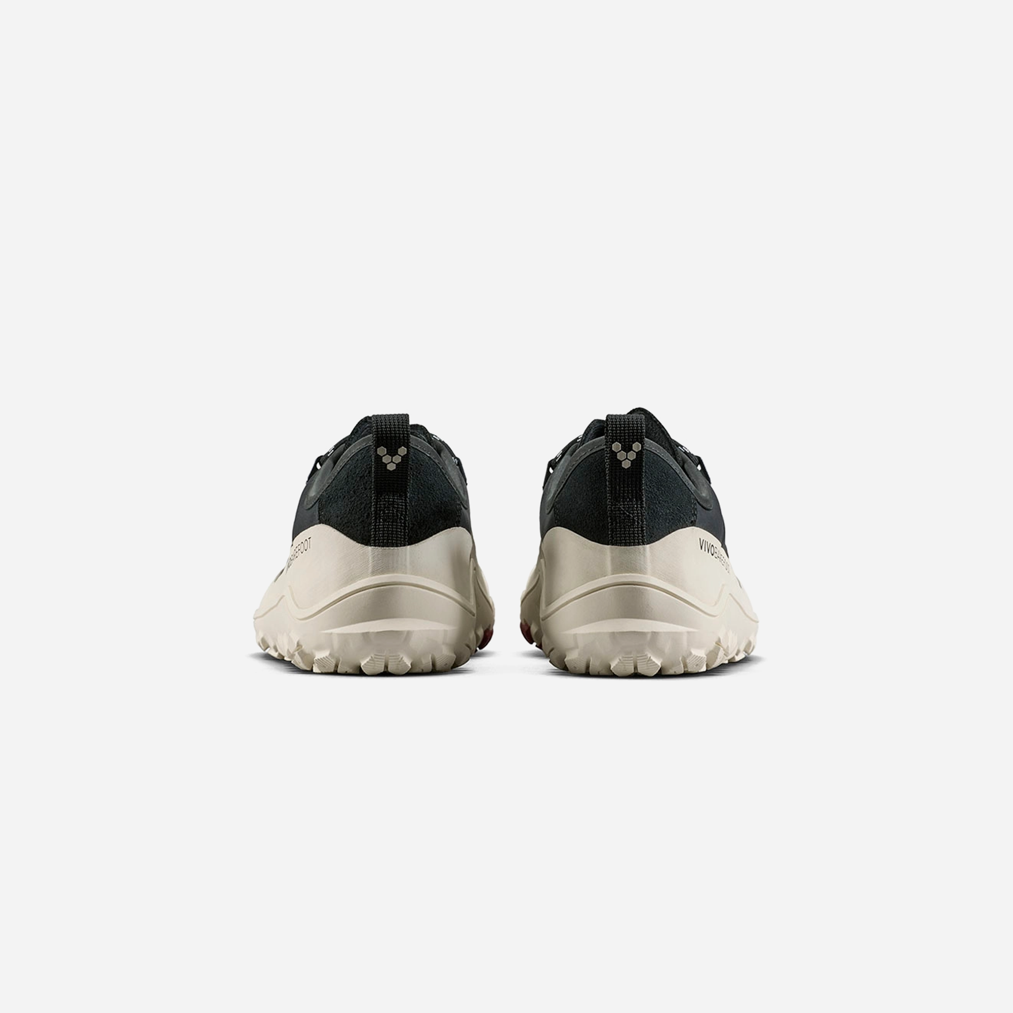 VivoBarefoot Tracker Leather Leather AT Low Obsidian White combines minimalist design with rugged durability for outdoor enthusiasts. These barefoot shoes feature premium leather construction and all-terrain grip, perfect for hiking and everyday wear. Experience natural movement and ground connection with superior comfort and protection.