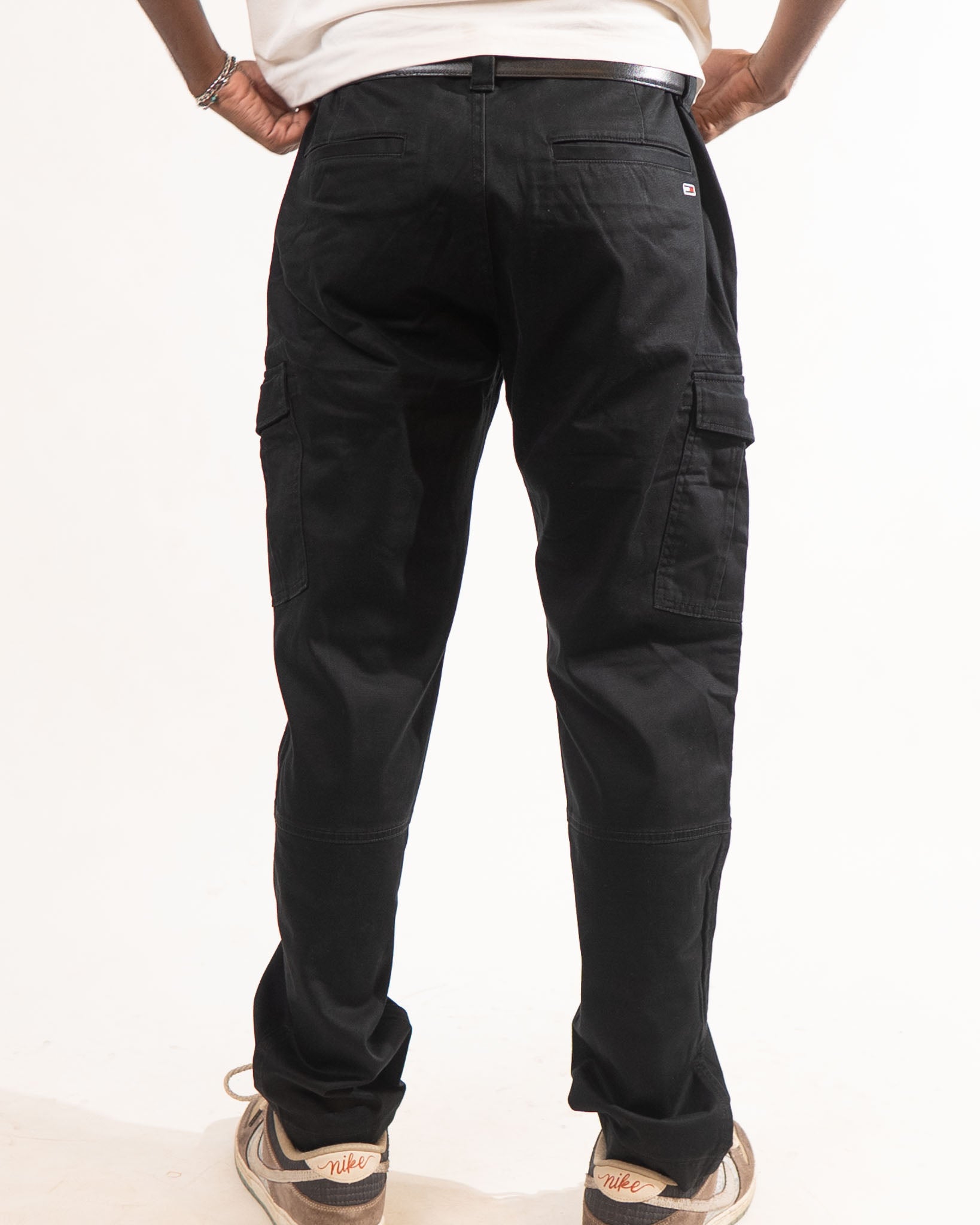 Tommy Hilfiger black cargo pants: modern fit, functional pockets, signature detailing, perfect for an upgraded street style.