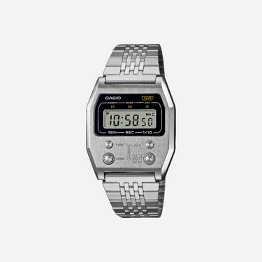 Casio Unisex Vintage A1100D-1DF Silver Digital Dial Silver Stainless Steel Band D326