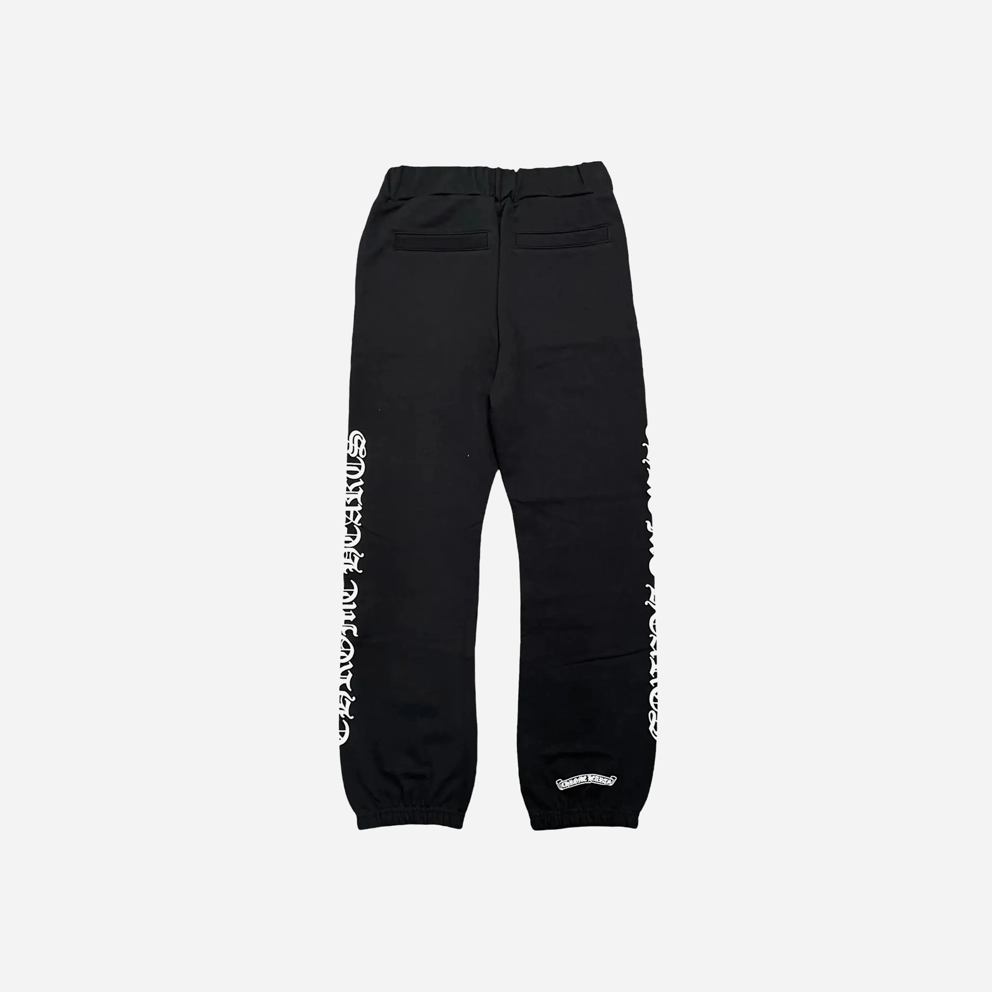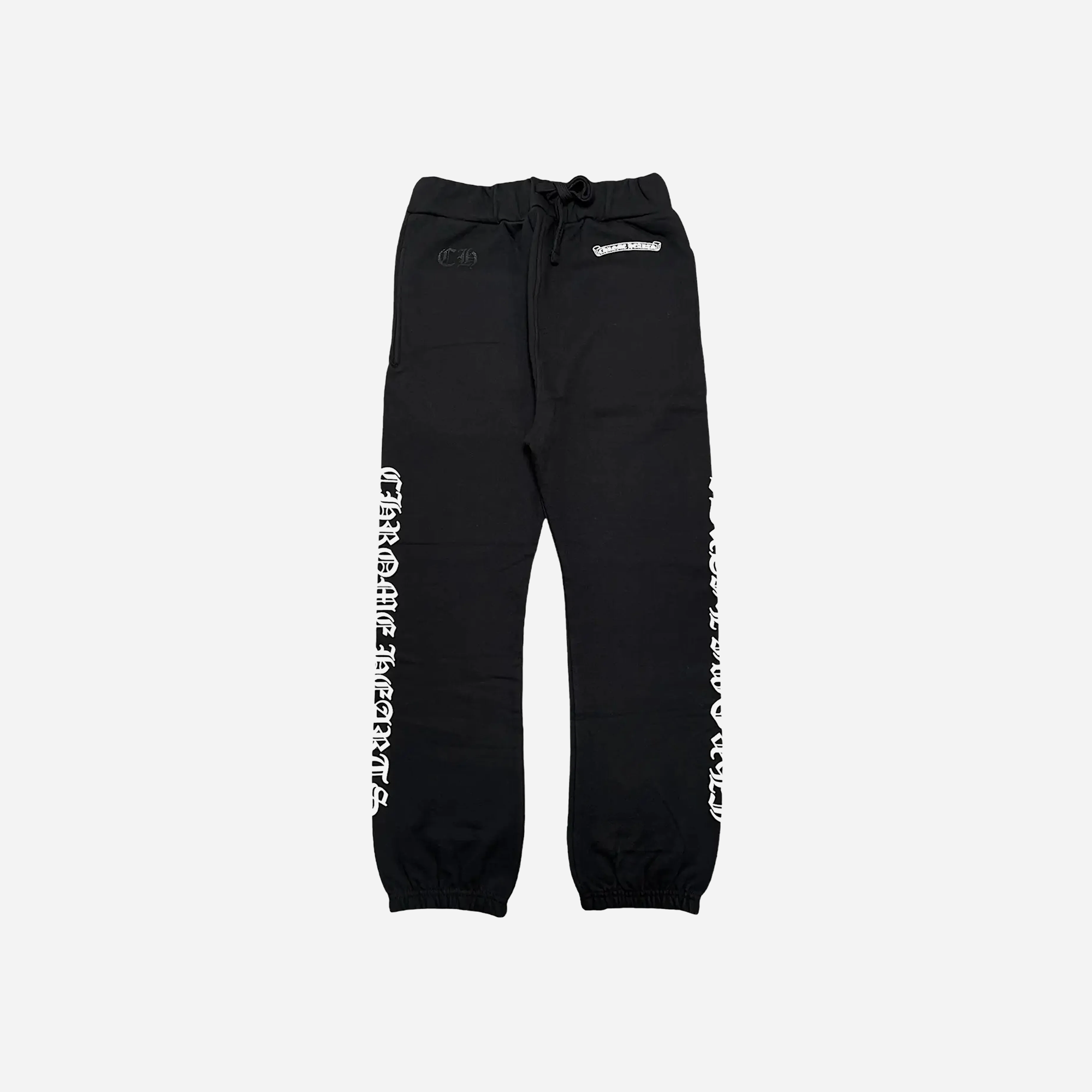 The Chrome Hearts Logo Sweatpants in black offer supreme comfort and effortless style for your casual wardrobe. These premium sweatpants feature the iconic Chrome Hearts logo, making a bold statement. Crafted from high quality materials, they provide a relaxed fit perfect for everyday luxury wear. Elevate your streetwear look with these must have branded sweatpants.