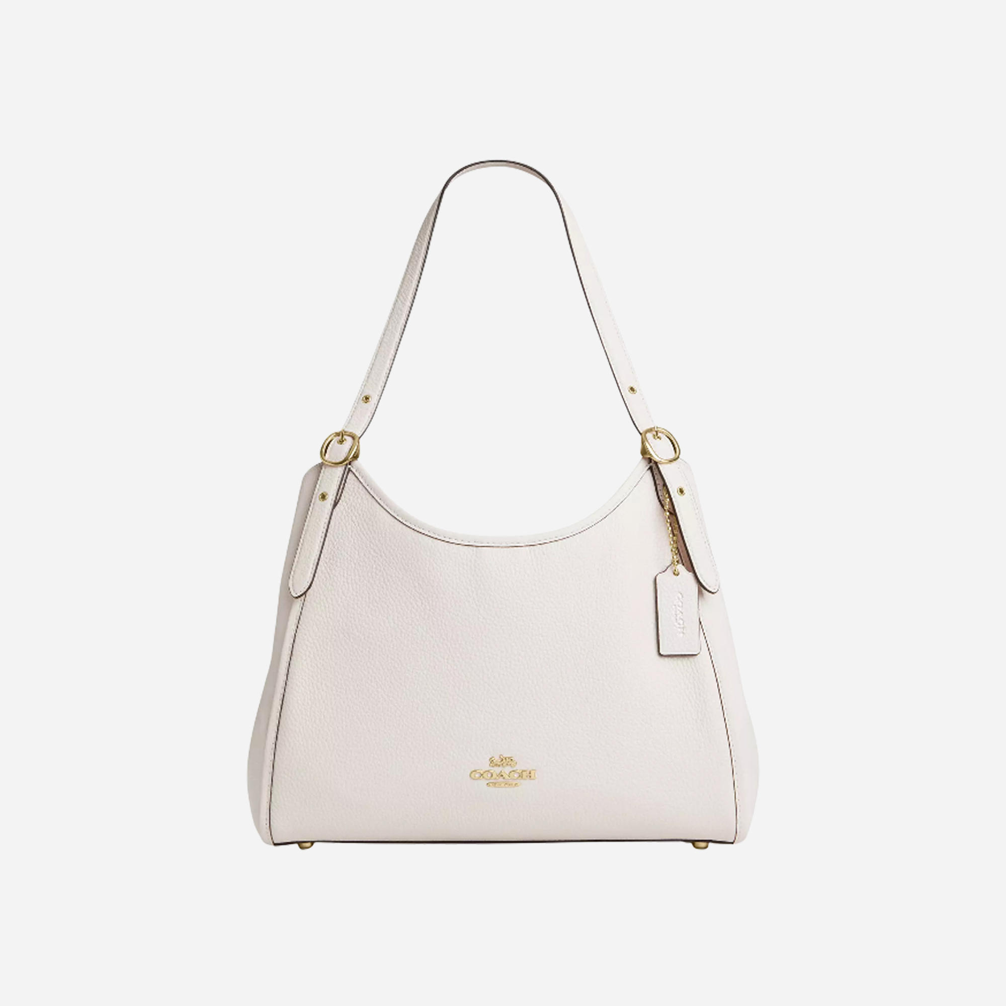 The COACH Erin Shoulder Bag combines timeless elegance with everyday practicality. Crafted from premium pebbled leather in a sophisticated chalk hue, this bag features polished gold-tone hardware and a structured silhouette. Perfect for work or weekend outings, it offers refined style and lasting durability for the modern professional.
