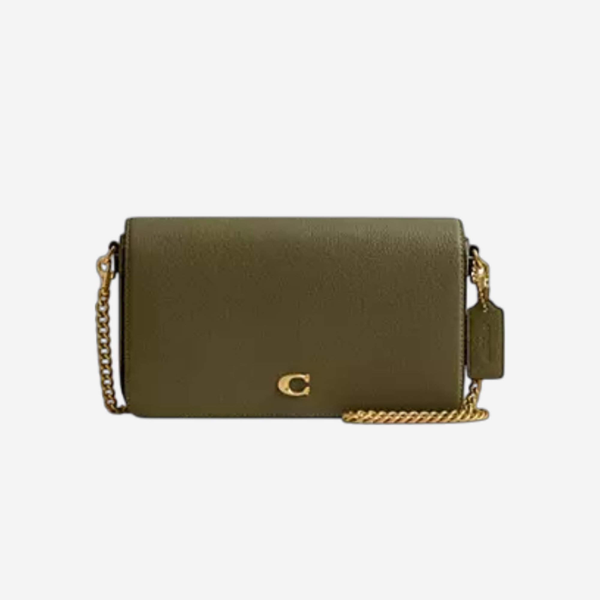 The Coach Mila Crossbody Bag in signature canvas features brass hardware with an olive finish. This elegant bag offers durability and a compact design, perfect for daily use while enhancing your style with a versatile and sophisticated accessory for any occasion.