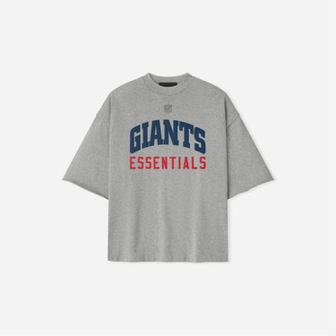 The Fear Of God Essentials Giants 90s 3/4 Sleeve Football Tee in Concrete Heather blends vintage athletic style with modern streetwear. This essential piece features a comfortable, relaxed fit and a classic 90s inspired design, perfect for fans and fashion-forward individuals. Elevate your casual look with this premium quality, must-have Giants apparel.