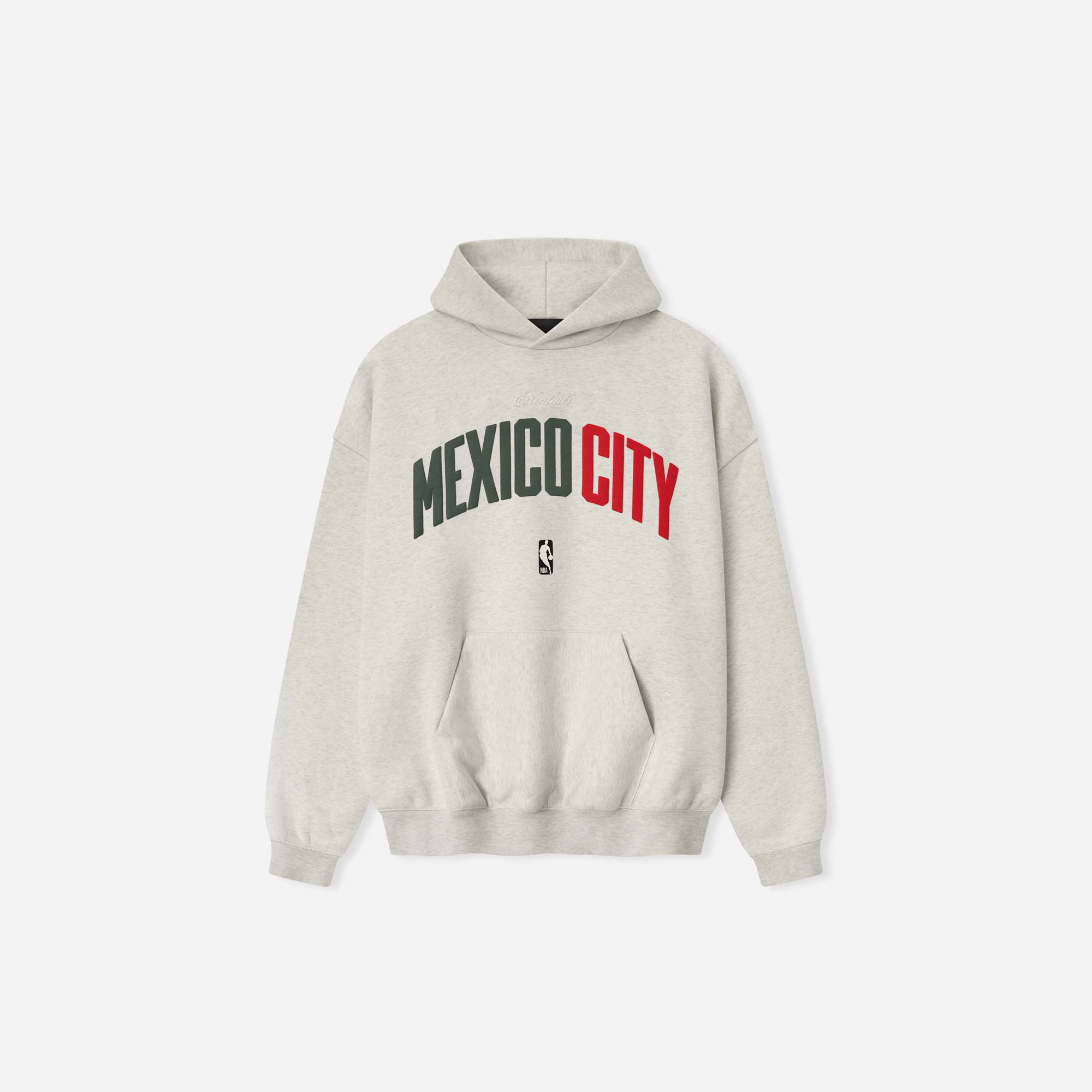 The Fear Of God Essentials Mexico City 90s Hoodie Oatmeal Heather Light Heather blends vintage inspiration with modern comfort. This premium hoodie offers a cozy feel and a relaxed fit, perfect for layering and everyday wear. Its distinctive colorway provides an elevated streetwear aesthetic. Shop this essential piece for ultimate style and comfort.