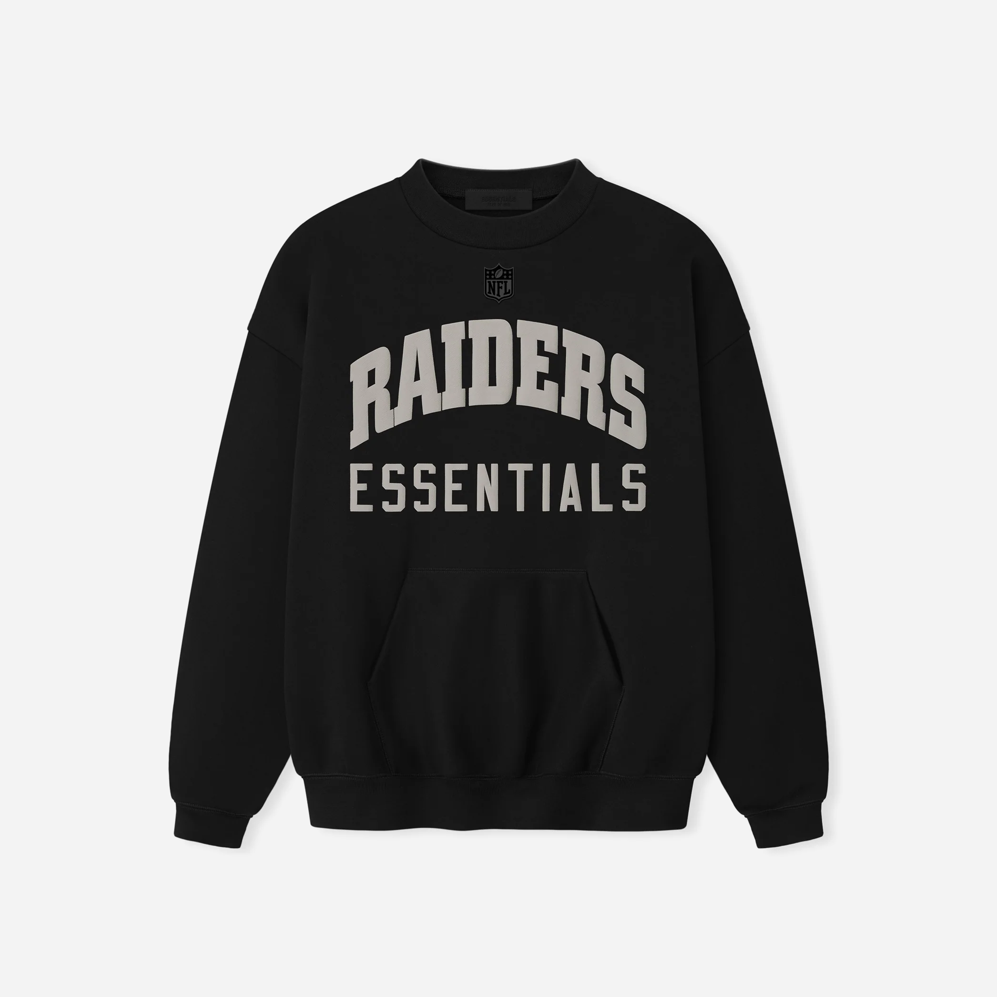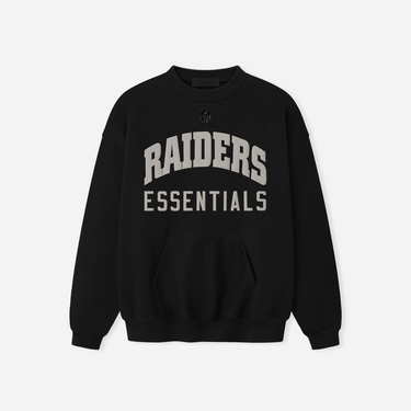 The Fear Of God Essentials Raiders Sport Crewneck in black delivers elevated comfort and minimalist style perfect for everyday layering. This collectible crewneck features a classic fit and premium fabrication, effortlessly blending high fashion with athletic wear. Showcase your team spirit with this essential versatile piece.