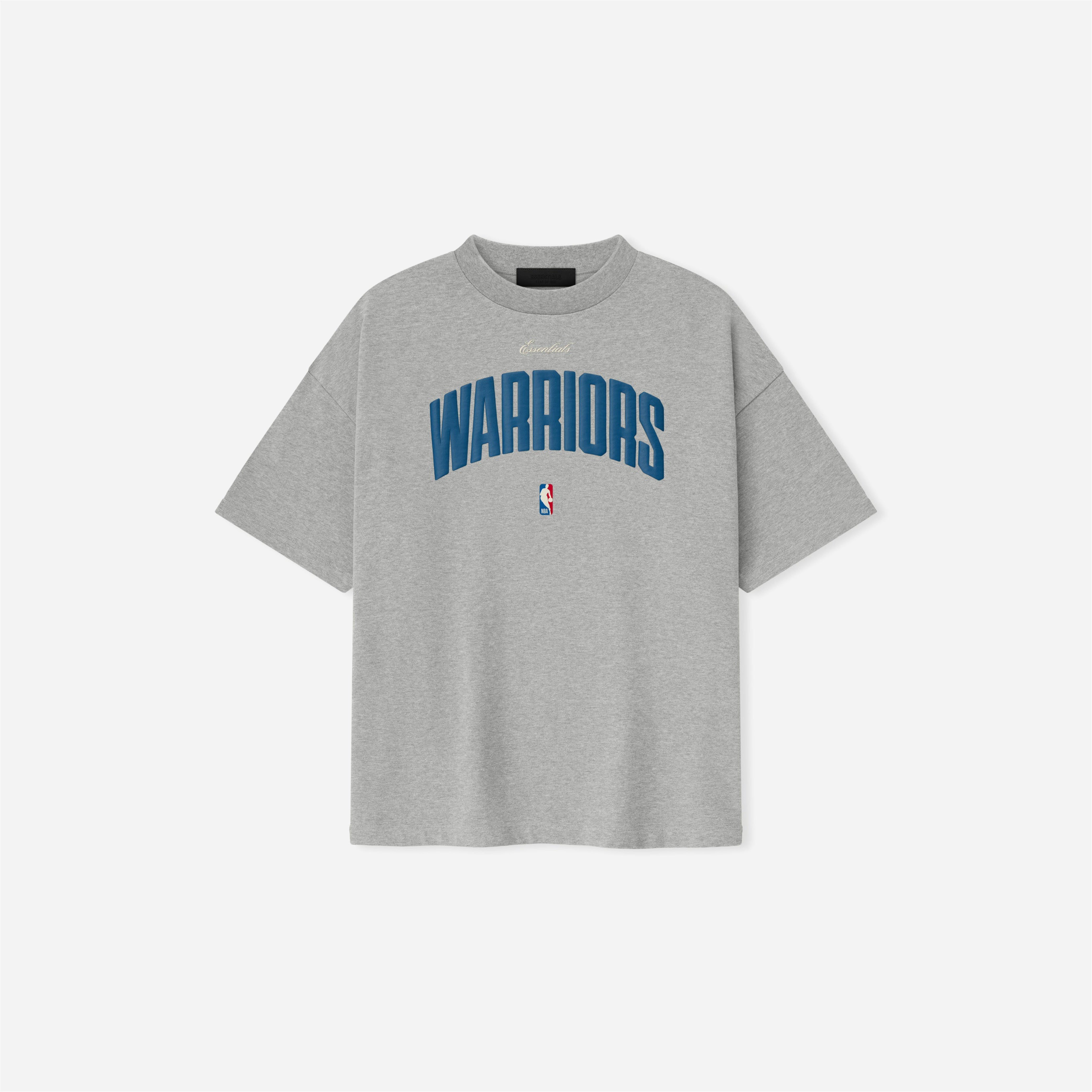 The Fear Of God Essentials Warriors 90s Concrete Heather Tee blends vintage aesthetic with modern streetwear appeal. This essential t-shirt boasts a comfortable 90s inspired fit and durable fabric quality, ideal for everyday wear. Show your team pride with this highly sought after collectible piece that elevates any casual outfit. Its classic style is perfect for Golden State Warriors fans.