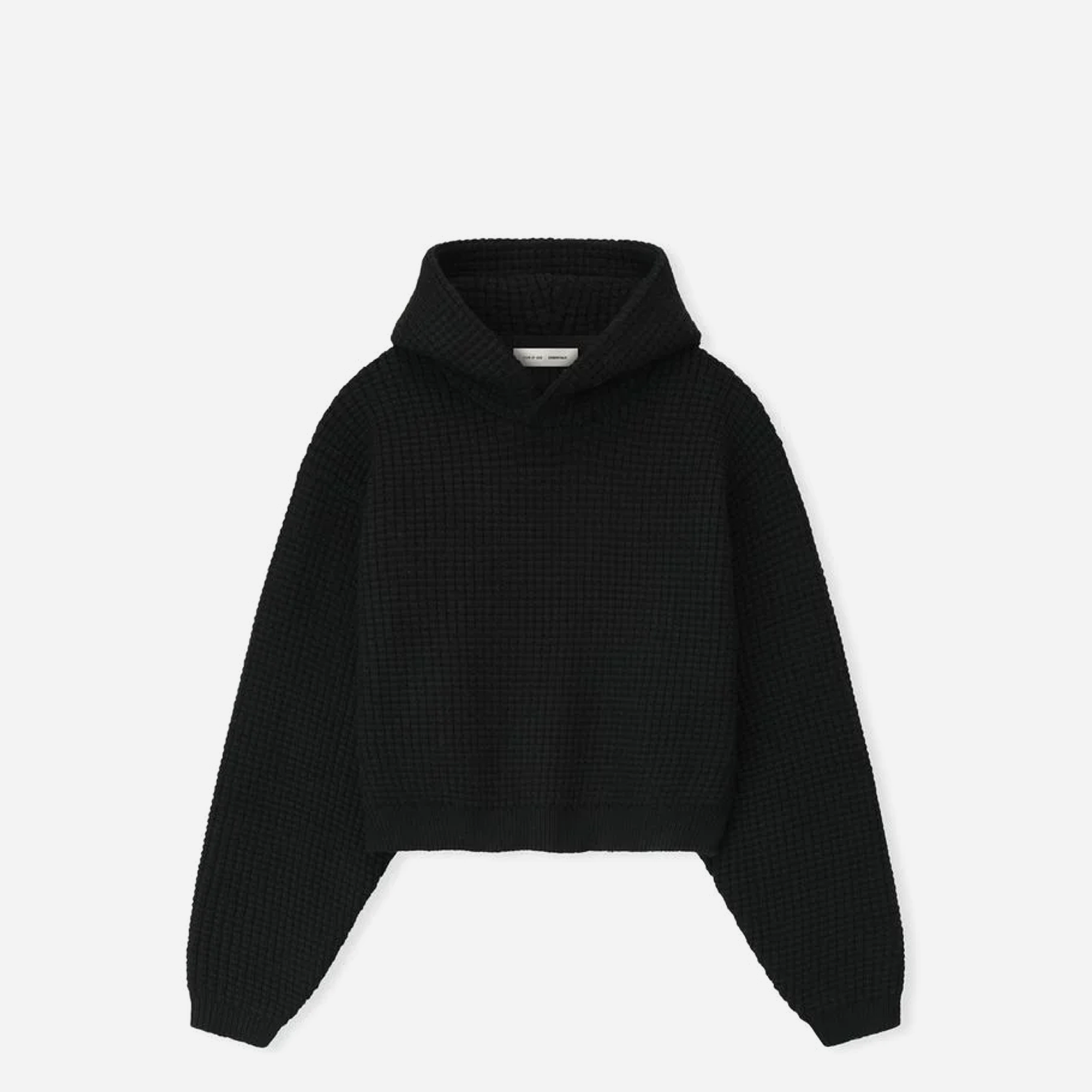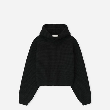 Fear of God Essentials womens heavy waffle hoodie in vintage black delivers 90s inspired style with premium comfort. This oversized silhouette features durable waffle knit fabric perfect for casual wear. Ideal for streetwear enthusiasts seeking authentic vintage aesthetics and quality construction.