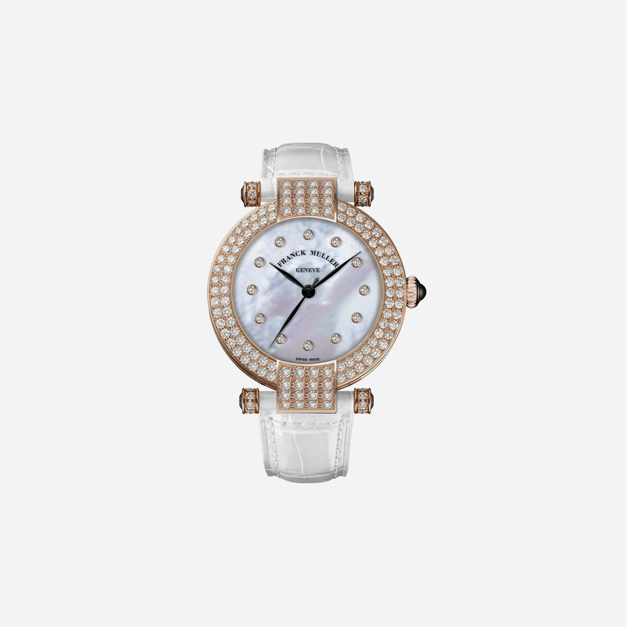 The Franck Muller Cielo Mother of Pearl Dial watch is a luxurious womens timepiece. This elegant 36mm leather strap watch features a stunning Mother of Pearl dial. Perfect for those seeking a sophisticated accessory, it combines high quality craftsmanship with timeless design.