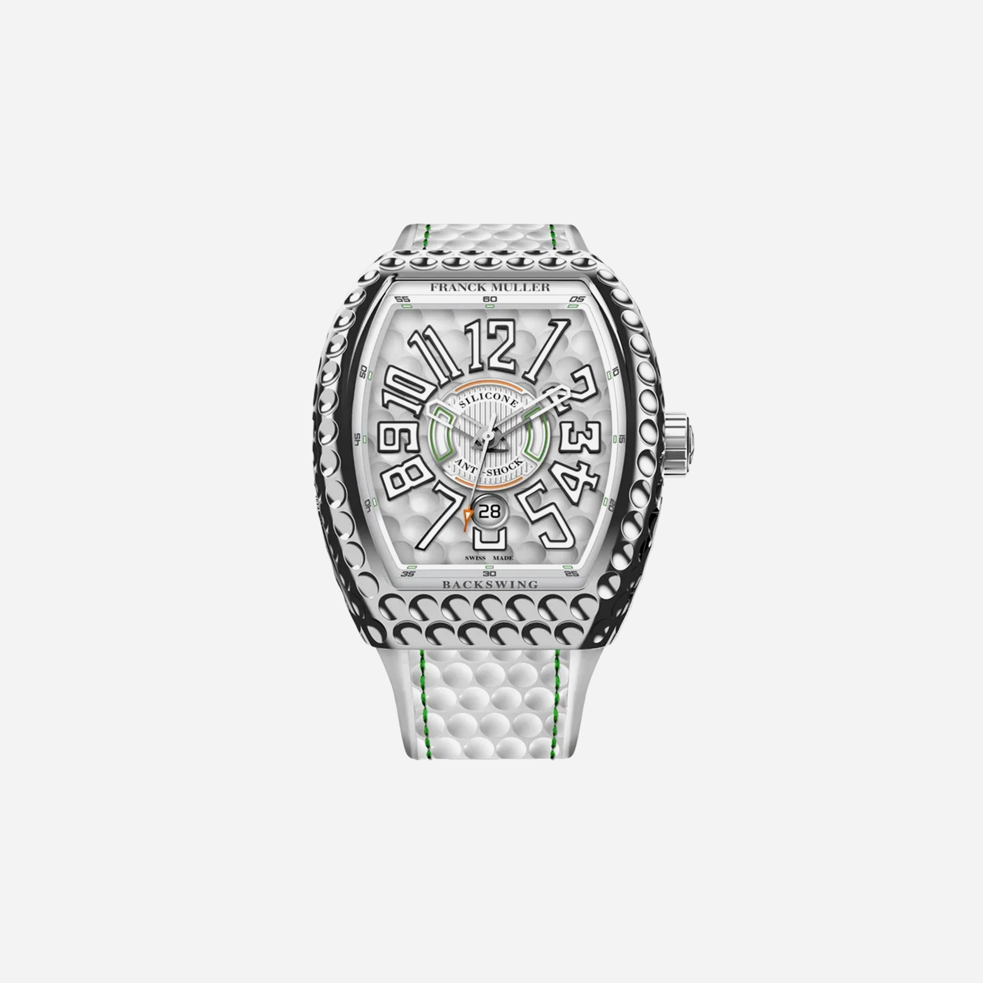 The Franck Muller Vanguard Golf Edition is a sophisticated timepiece with a striking white dial and a comfortable leather strap. Perfect for the discerning watch collector and golf enthusiast, this luxury watch combines elegant design with a sporty aesthetic for a truly unique look.