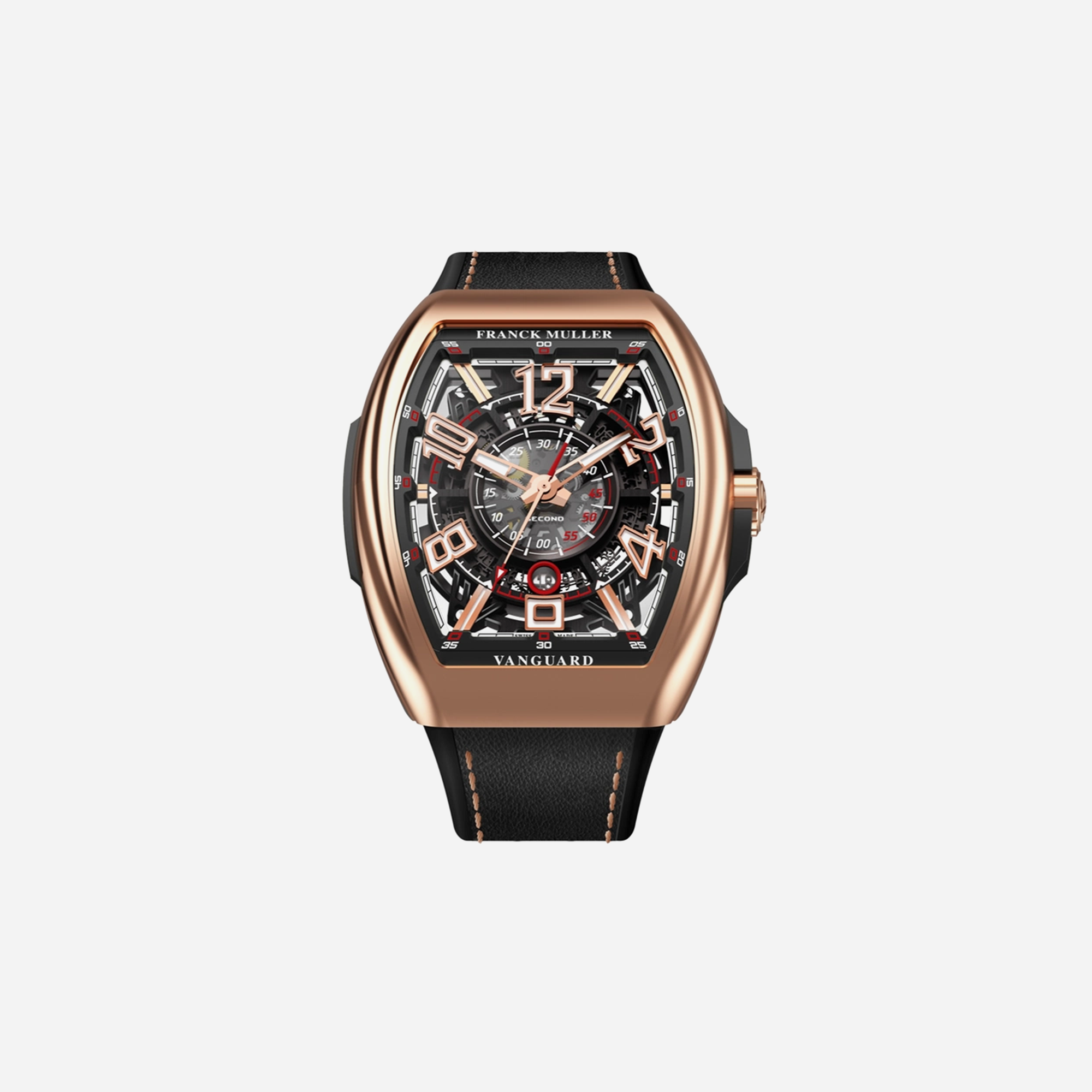 Franck Muller Vanguard Racing Skeleton Dial Leather Strap Watch - V 45 SC DT SQT RCG (NR)5N