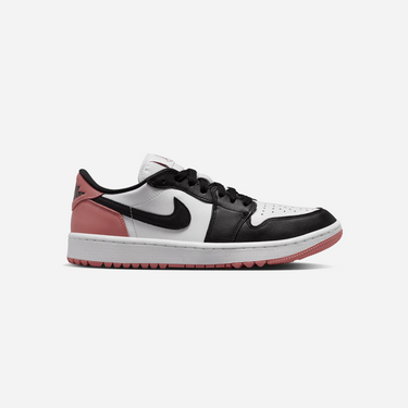 The Jordan 1 Retro Low Golf "Rust Pink" blends classic style with golf-ready performance. Featuring a soft Rust Pink and white leather upper, this low-top offers a premium look on and off the course. Designed with a golf-specific outsole for traction, it delivers comfort, style, and sport functionality perfect for players who want iconic Jordan flair while teeing off.