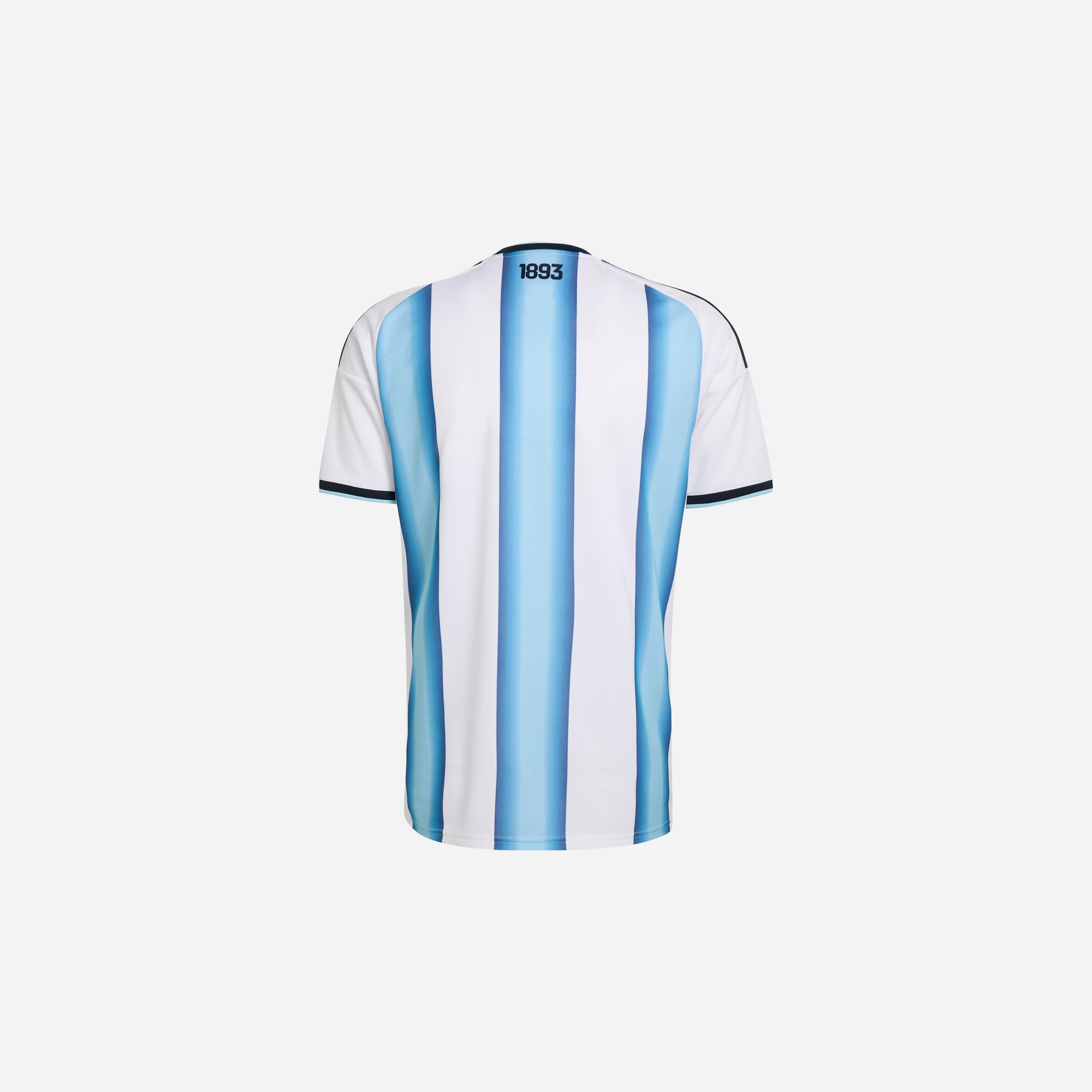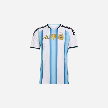 The Argentina 26 Home Jersey is more than just a jersey; it's a celebration of Argentina's football legacy. This kit is inspired by the jerseys worn during Argentina's three World Cup victories in '78, '86, and '22, and complemented by the federation's year of foundation as a proud sign-off.