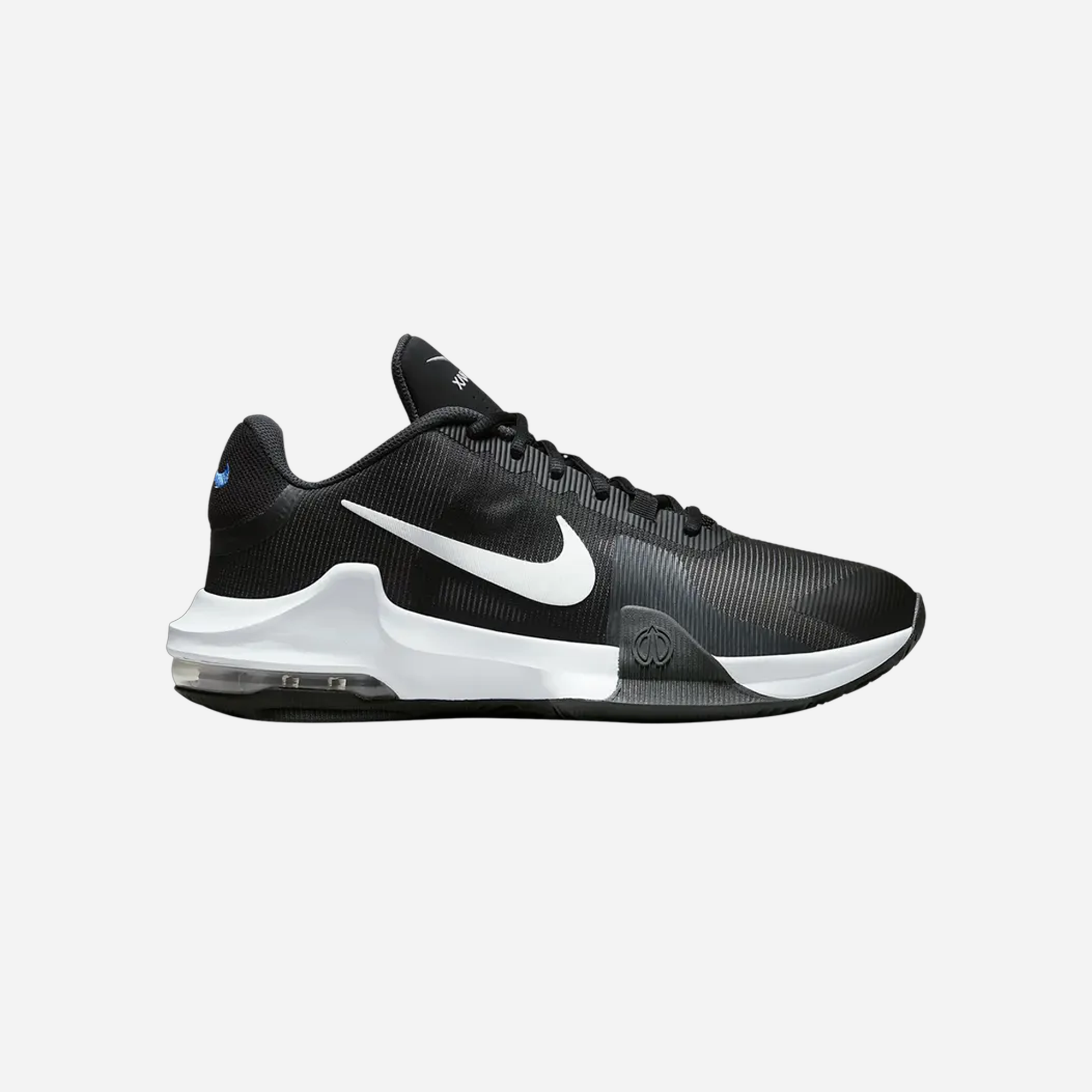 Nike Air Max Impact 4 Black basketball shoes offer responsive cushioning with a visible Max Air unit supportive upper and durable traction perfect for on court performance or everyday athletic style and comfort.