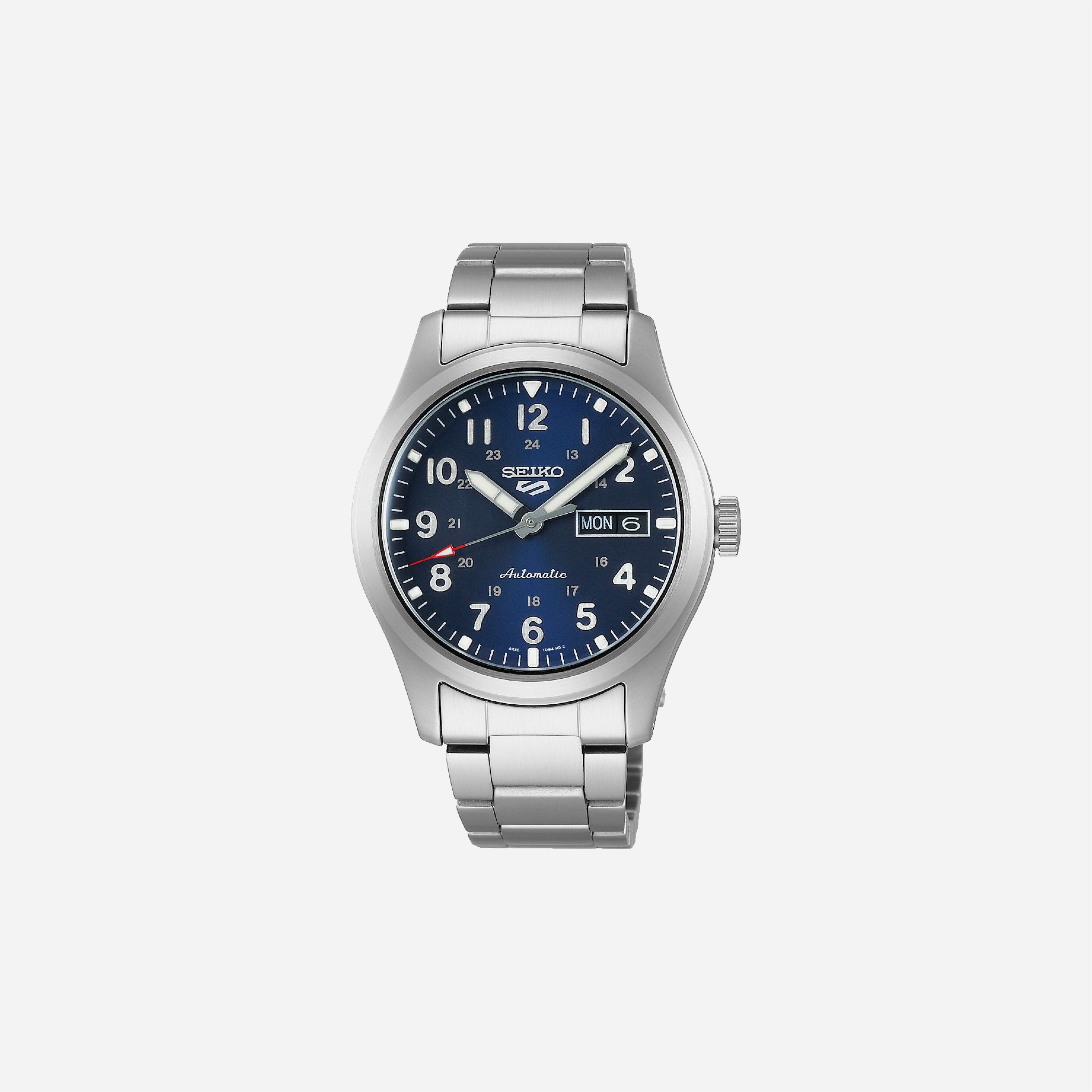 The Seiko 5 Sports Field Collection Automatic watch features a reliable automatic movement and a striking blue dial. This stainless steel timepiece is perfect for everyday wear and rugged adventures. Its durable design and classic field watch aesthetic make it a versatile choice for any collection.