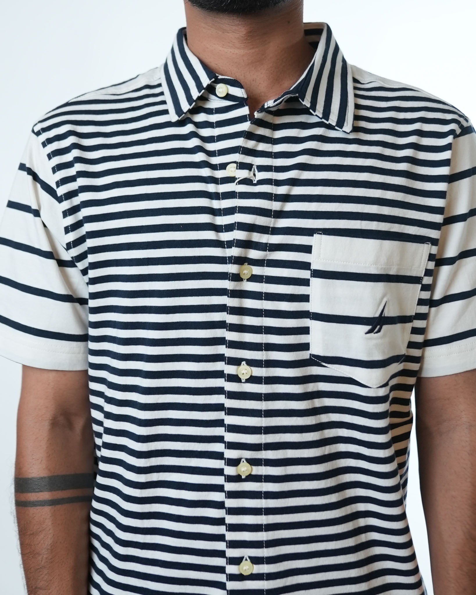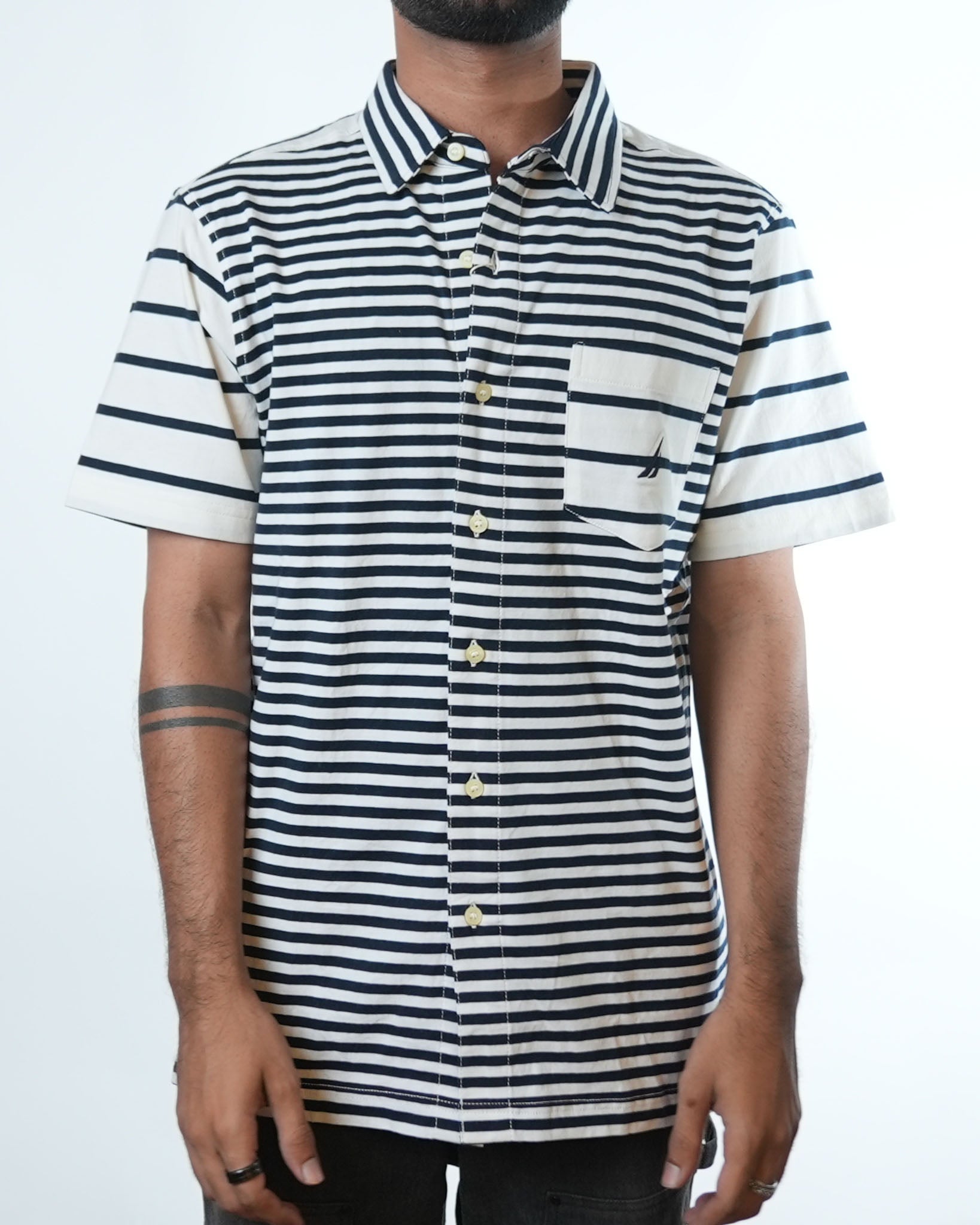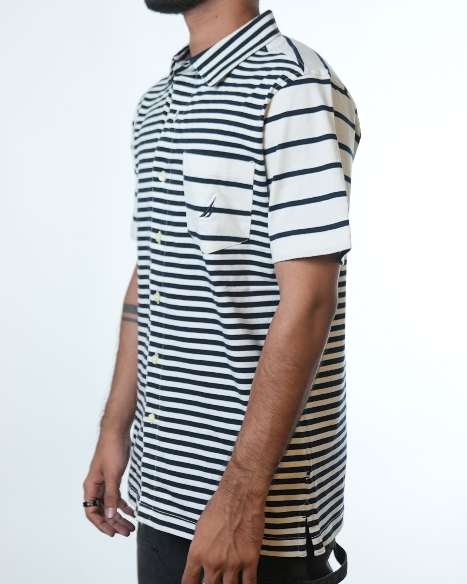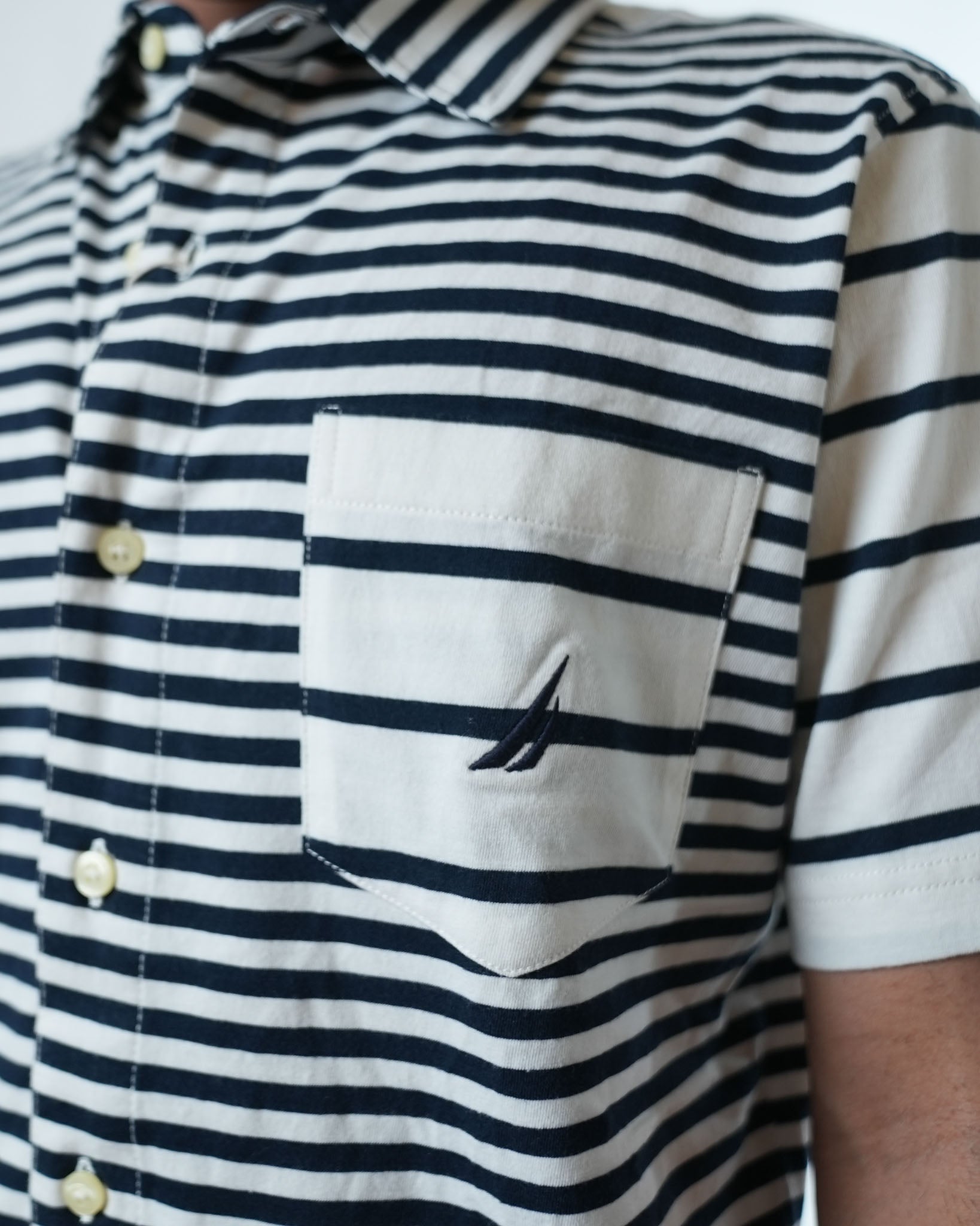 Classic Nautica blue striped shirt offers timeless style, soft comfort, and a relaxed, versatile fit for any occasion. Classic style