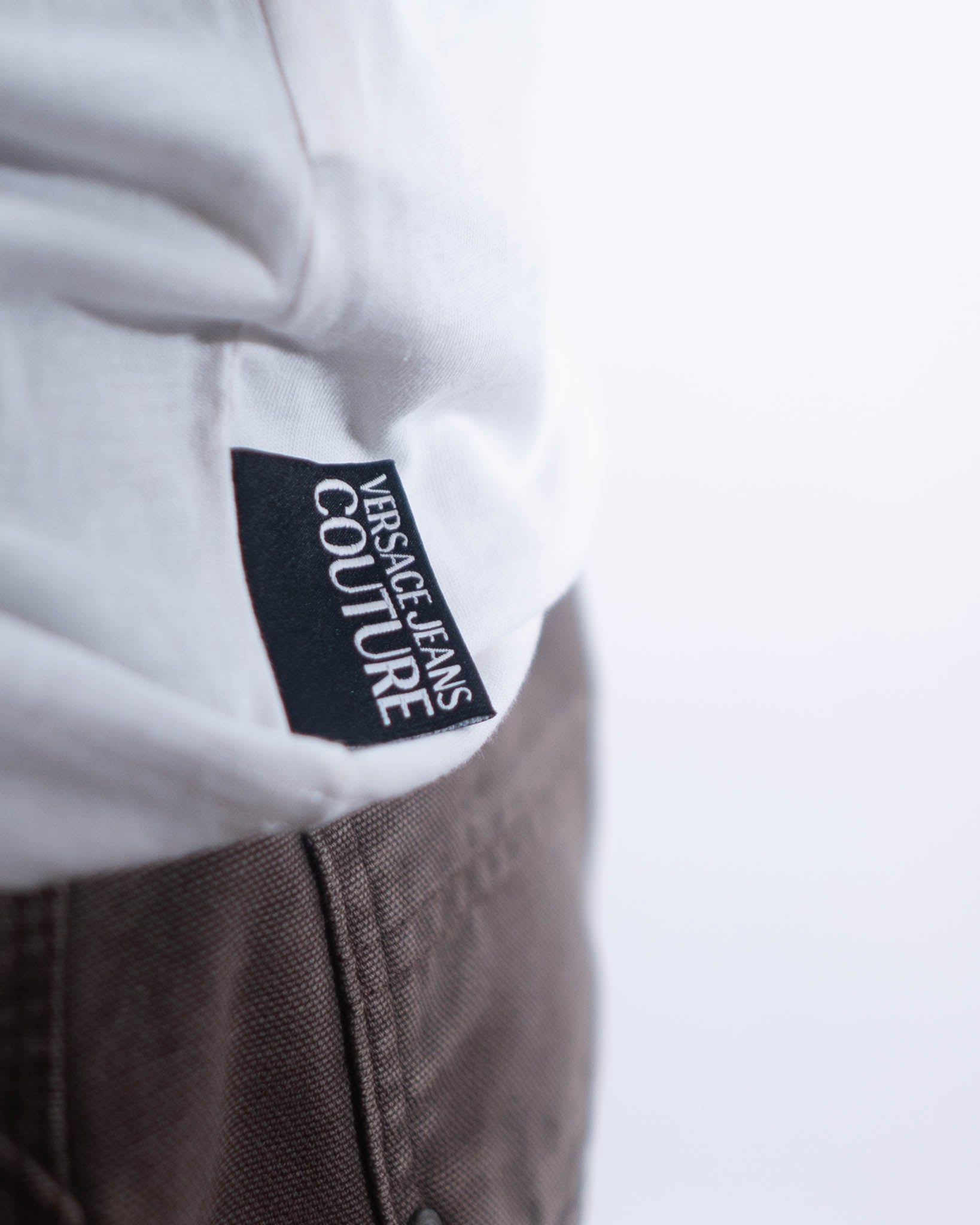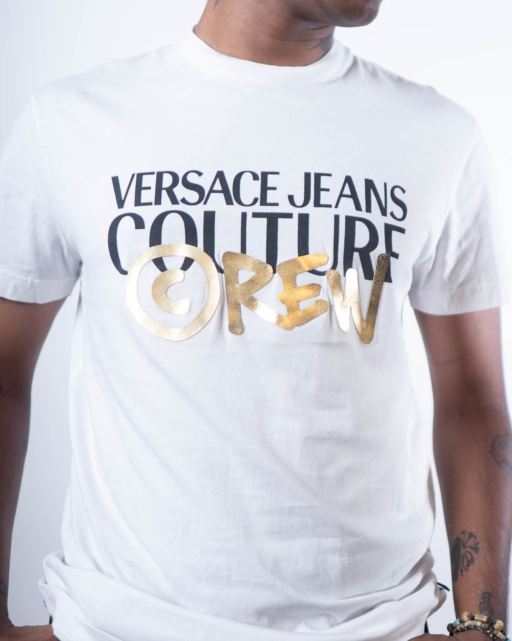 A refined Versace Couture wardrobe staple featuring the crew logo. Wardrobe staple