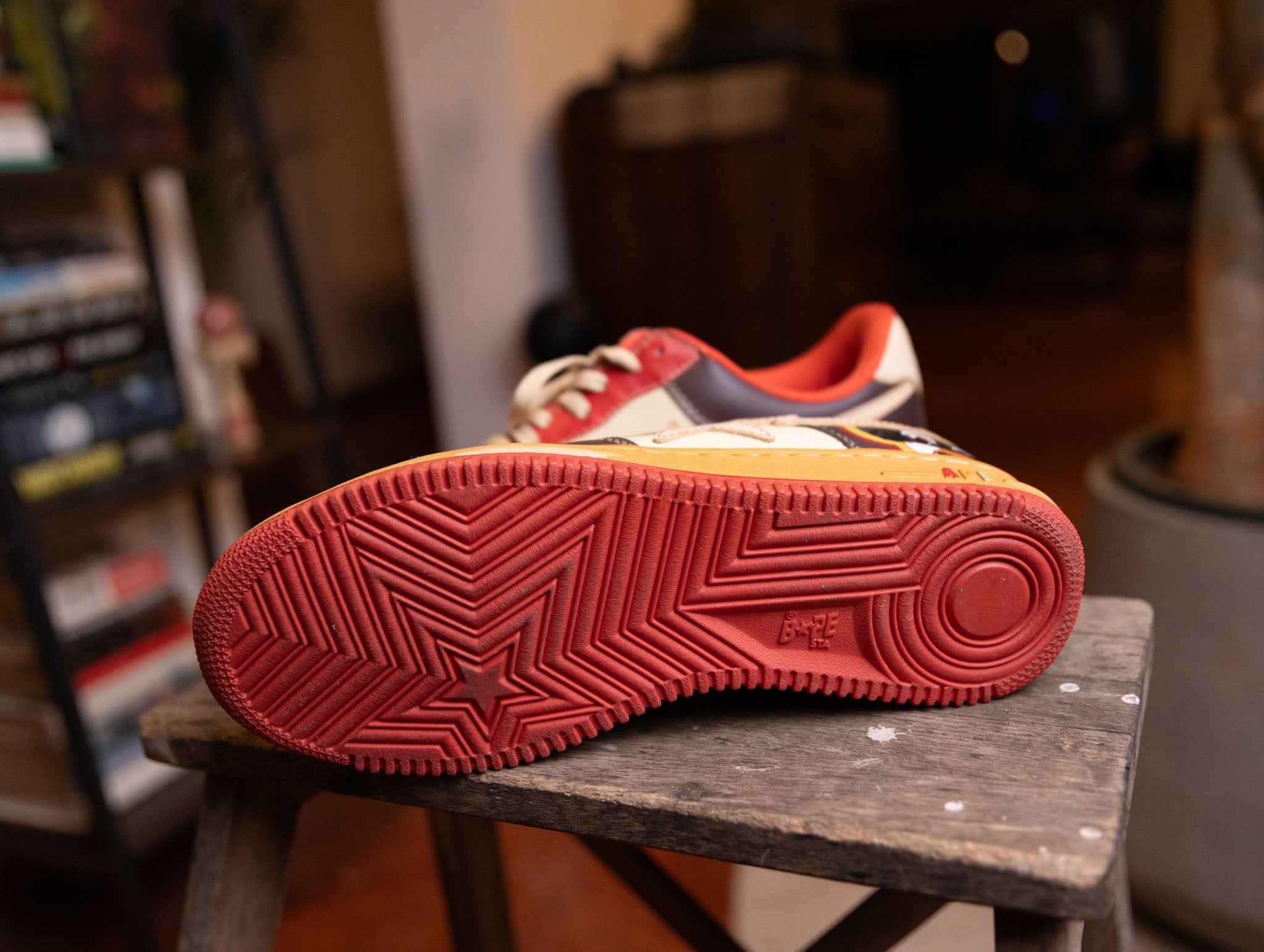 Kanye collaboration offers low-top Bape Sta in premium leather with nostalgic colorway, playful detailing, and exclusive streetwear appeal.