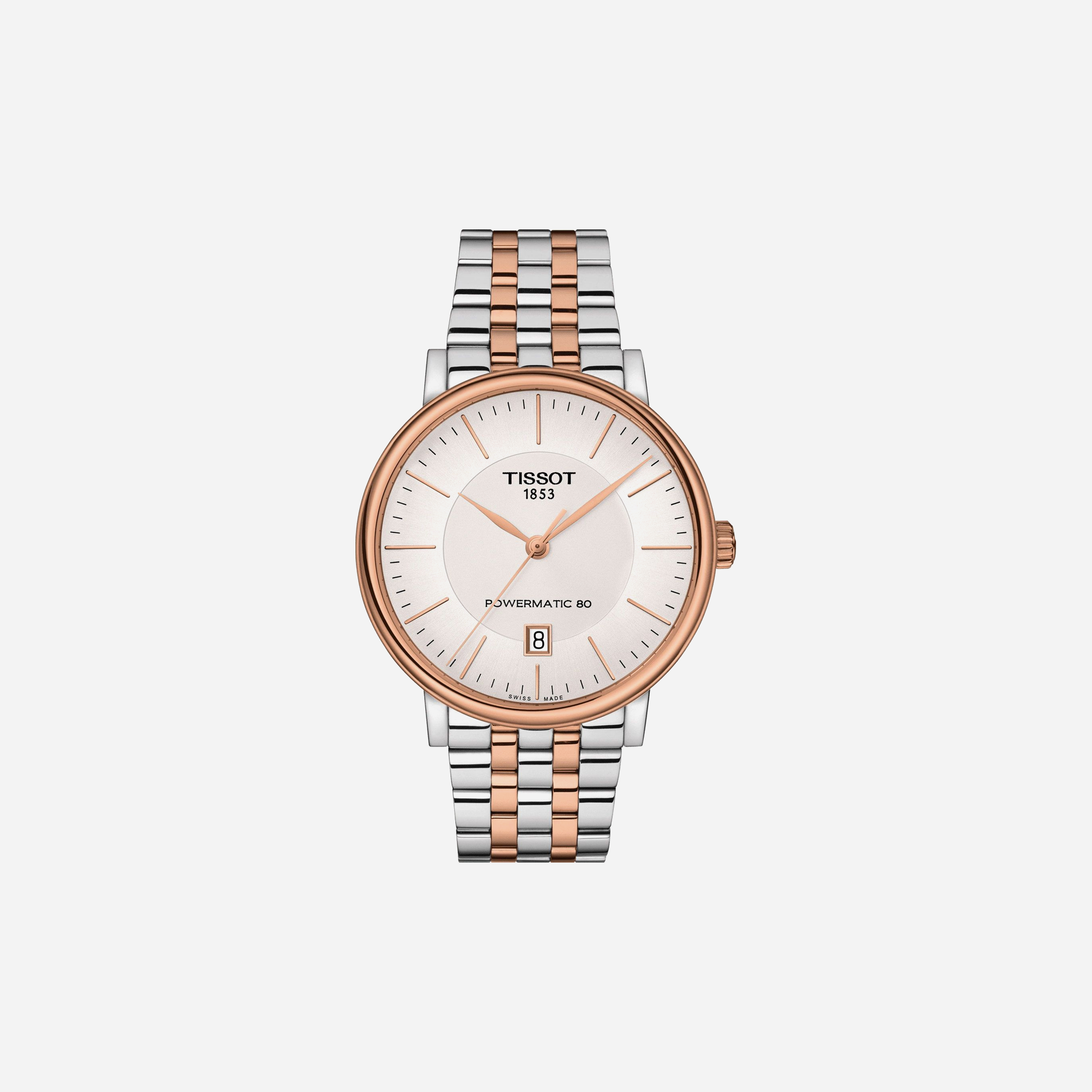 Tissot Carson Premium Powermatic 80 Automatic Dial Silver & Rose Gold Stainless Steel Rose Gold PVD Strap Watch