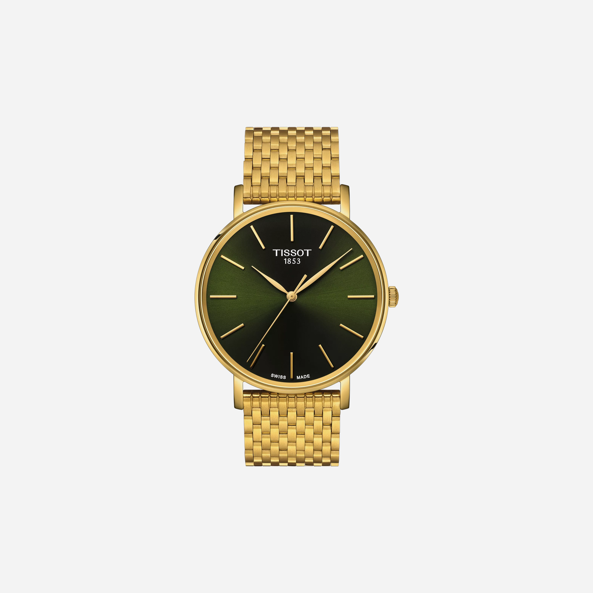 The Tissot Everytime 40mm features a stunning leaf dial and a sophisticated yellow gold stainless steel PVD strap. This elegant timepiece is a perfect blend of style and precision, making it an essential accessory for everyday wear. Shop this luxury watch now and elevate your collection.