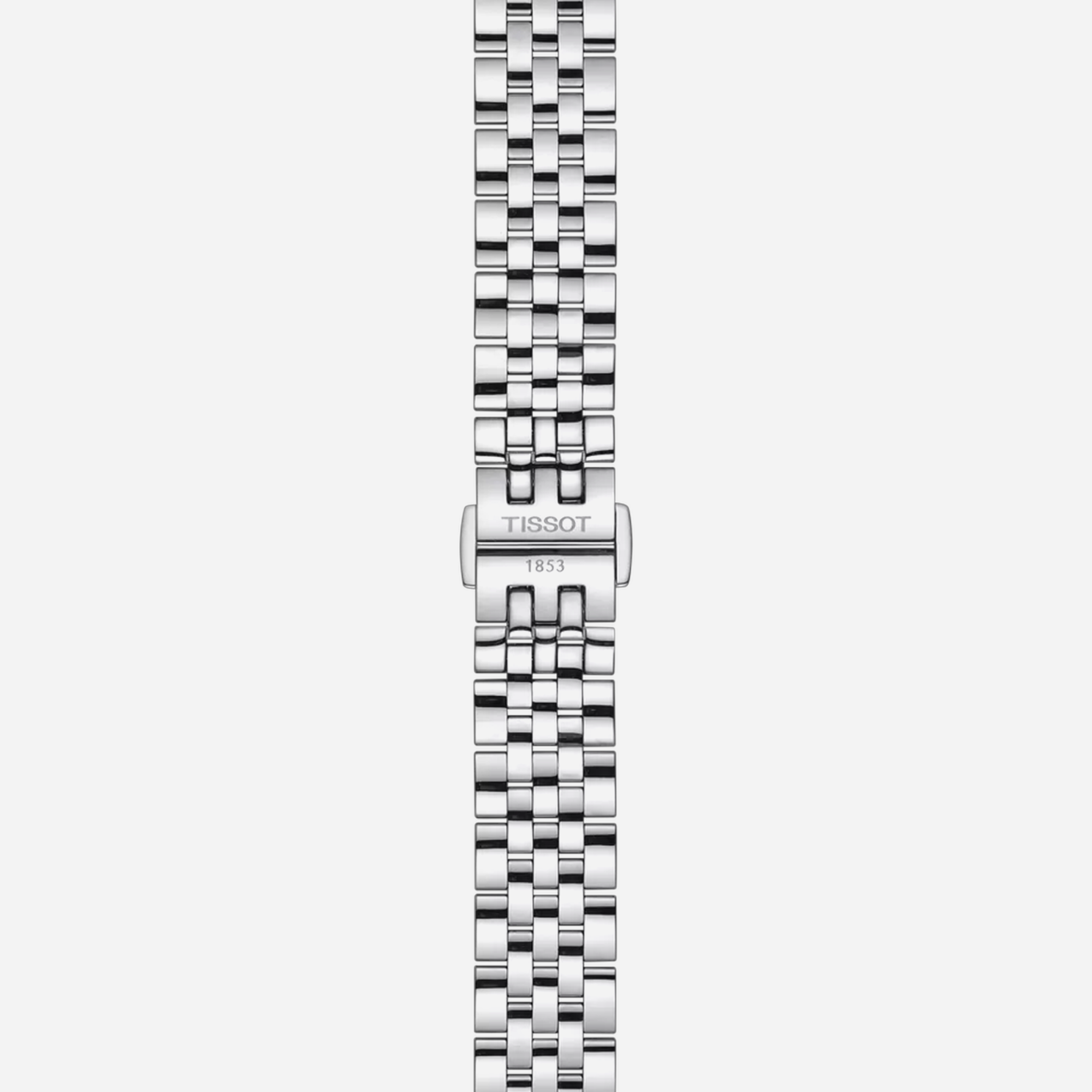 The Tissot Le Locle Automatic Lady watch is an elegant timepiece featuring a beautiful leaf dial and a silver stainless steel strap. This 29mm automatic watch is perfect for women seeking Swiss precision and classic style. Enhance your collection with this exquisite and luxurious Tissot watch.