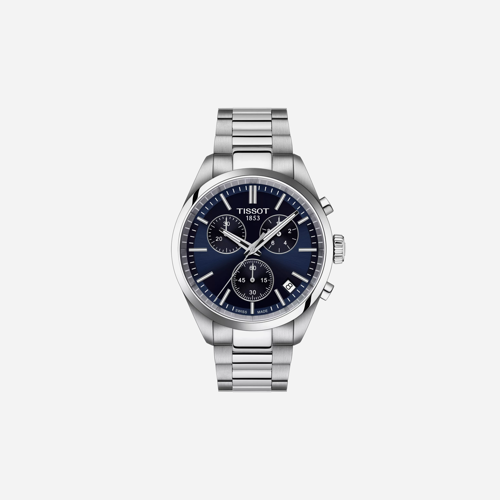 Tissot PR 100 Chronograph Blue Dial Silver Stainless Steel Watch 40mm