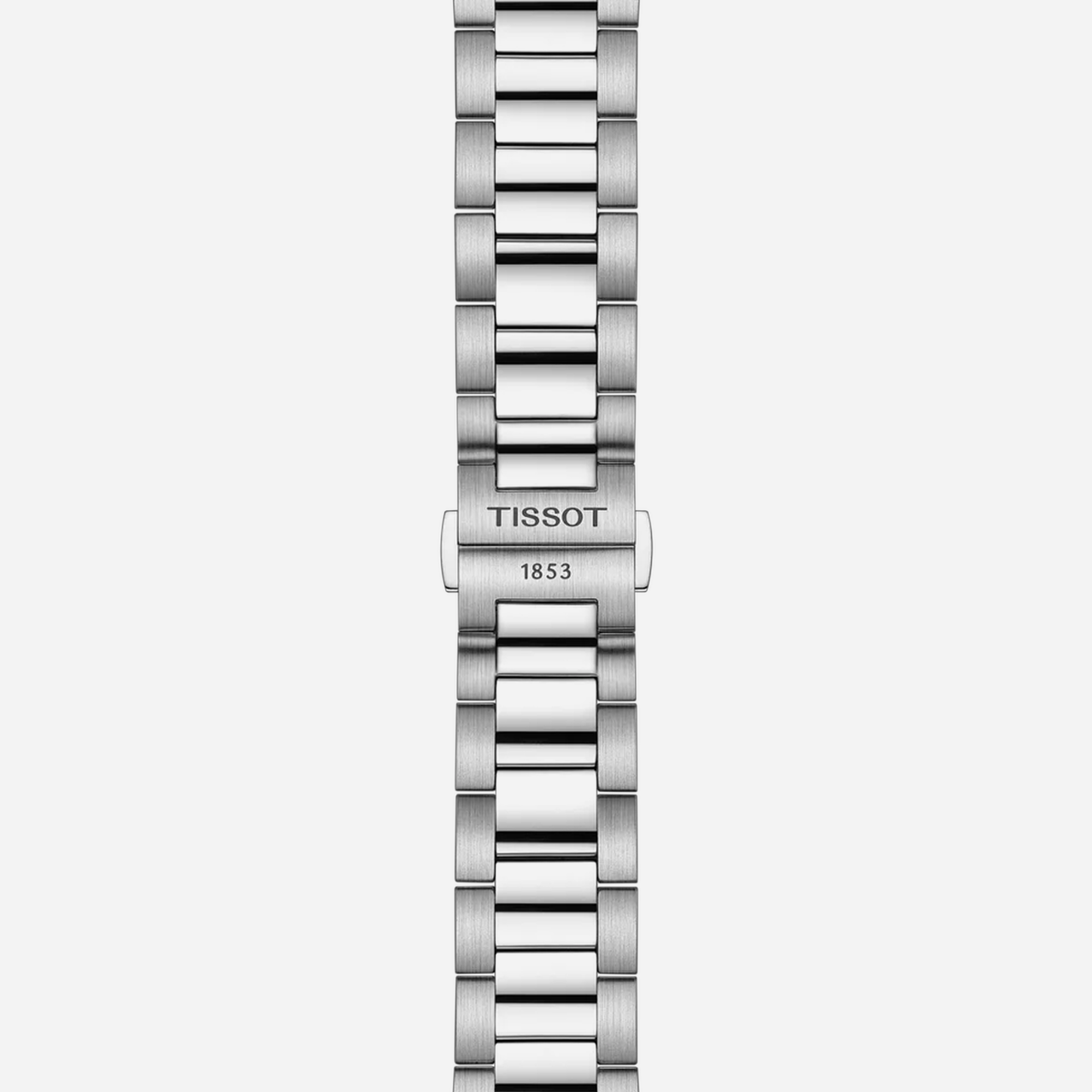 The Tissot PR 100 Chronograph watch boasts a striking blue dial and silver stainless steel case, making it a sophisticated timepiece for everyday wear. This 40mm watch combines precision timekeeping with a classic design, perfect for those seeking elegance and reliability.
