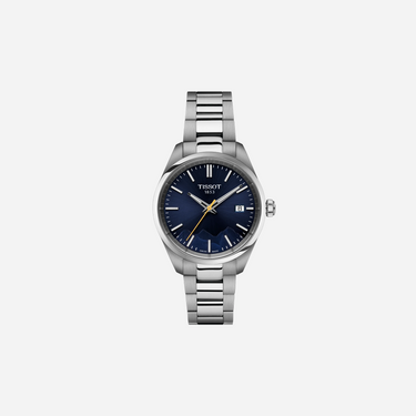 The Tissot PR 100 Jungfraubahn Quartz watch features a stunning 34mm blue dial and a classic silver steel bracelet. This elegant timepiece is reliable and precise, making it perfect for daily wear or special occasions. Experience Swiss craftsmanship and timeless design with this durable Tissot watch.