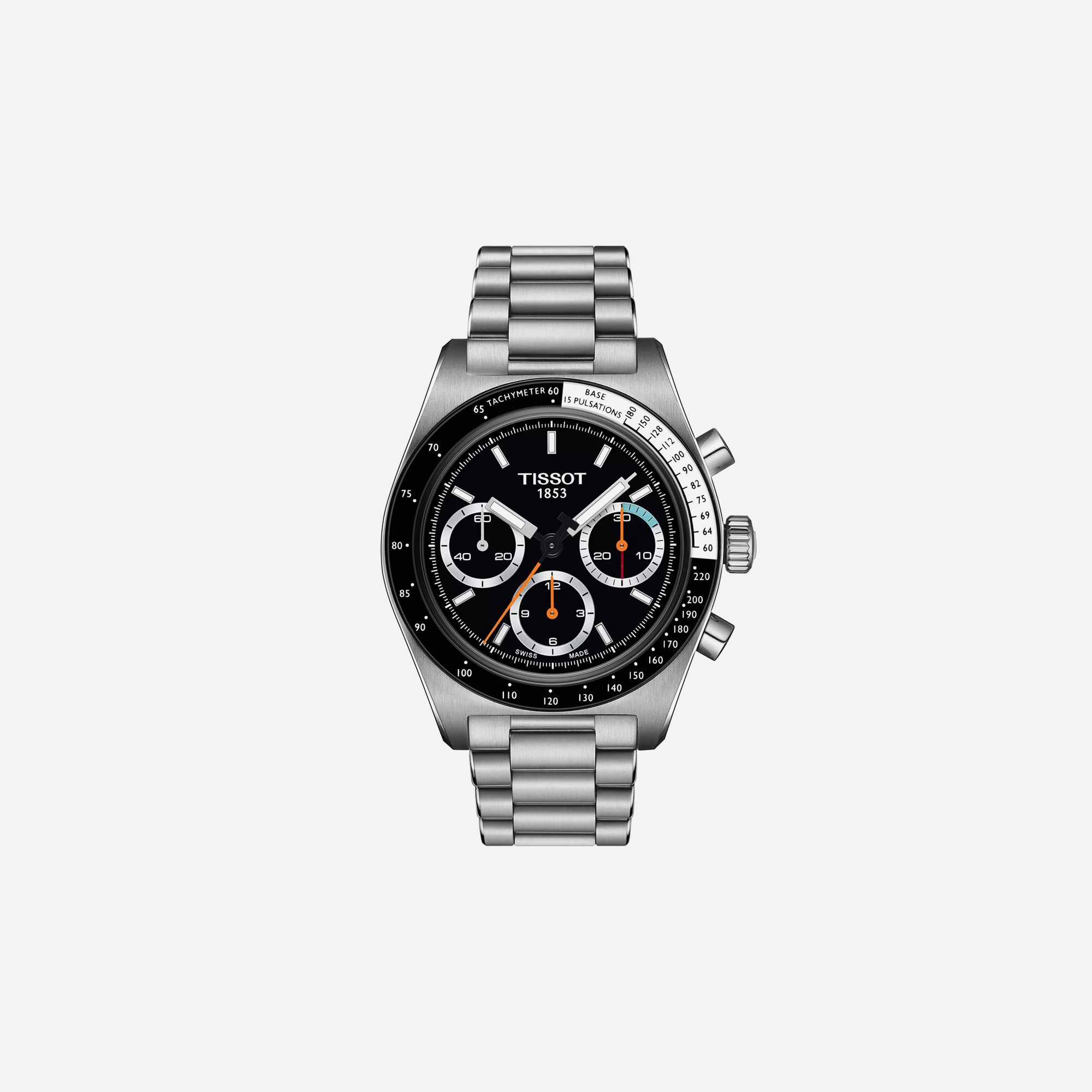 The Tissot PR516 Mechanical Chronograph is a stunning timepiece featuring a black dial and sleek silver stainless steel. This mens watch offers precision and vintage racing style. Its mechanical movement ensures reliable timekeeping, making it a perfect addition to any collection for a sophisticated, sporty look.