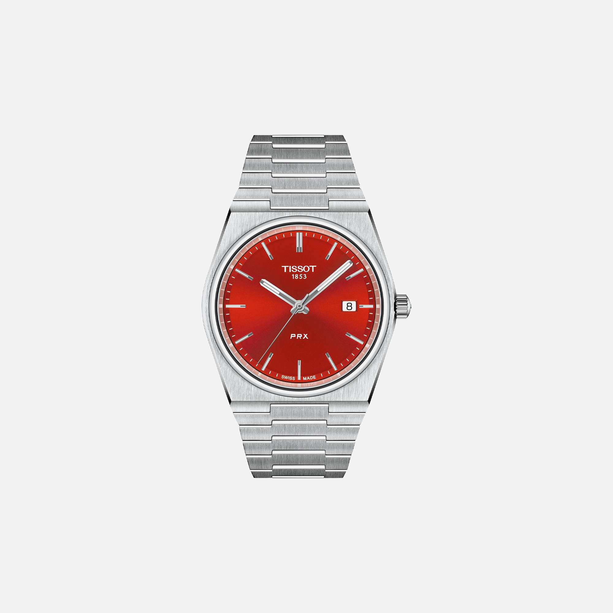 Tissot PRX Quartz 40mm Red Dial Silver Steel Watch