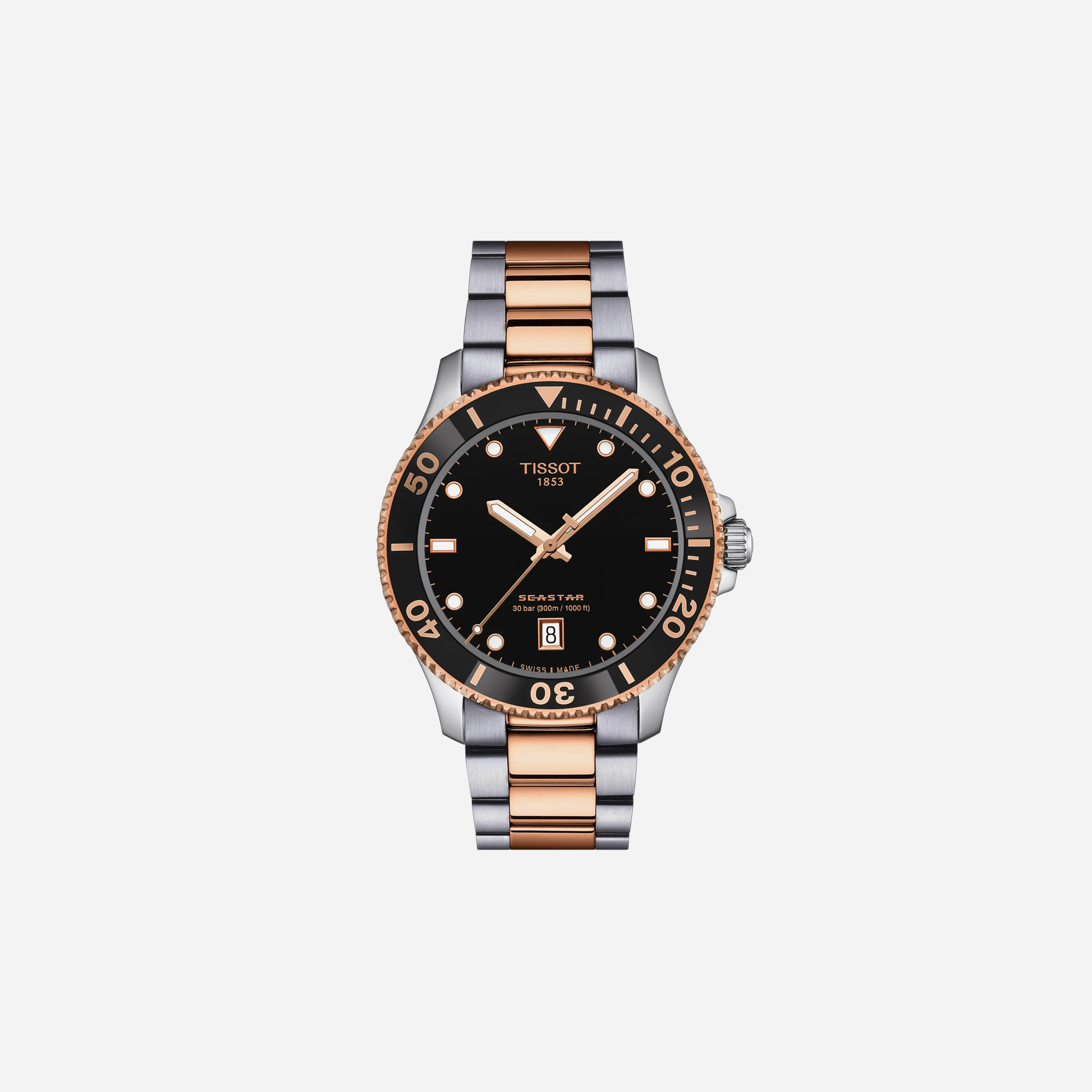 Tissot Seastar 1000 Quartz 40mm Black Dial Silver & Rose Gold PVD Watch