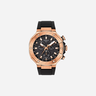 The Tissot T-Race Chronograph Black Dial Watch features a bold 45mm design and a durable black synthetic strap. This Swiss timepiece offers precision timing and a sporty look for those who value performance and style. Perfect for watch enthusiasts seeking a high-quality chronograph.