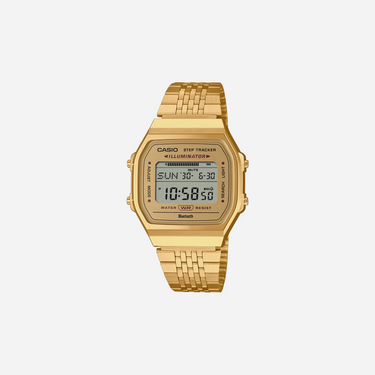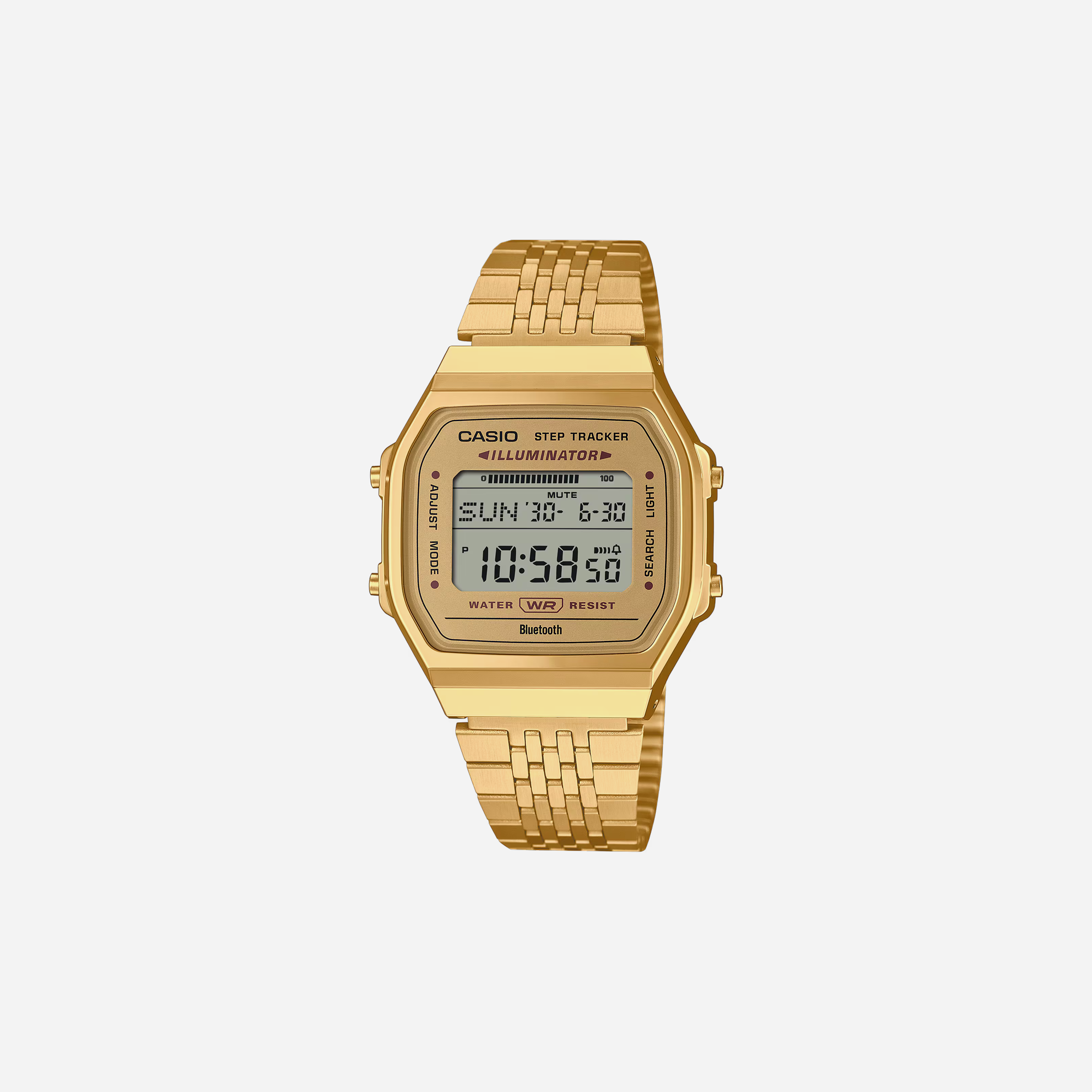 The Casio Vintage ABL-100WEG-9ADF watch offers a timeless gold dial and modern Bluetooth connectivity in a durable stainless steel design. This quartz digital timepiece blends retro aesthetic with smart features, making it a perfect accessory for both daily wear and special occasions. Shop this vintage inspired Casio watch today.